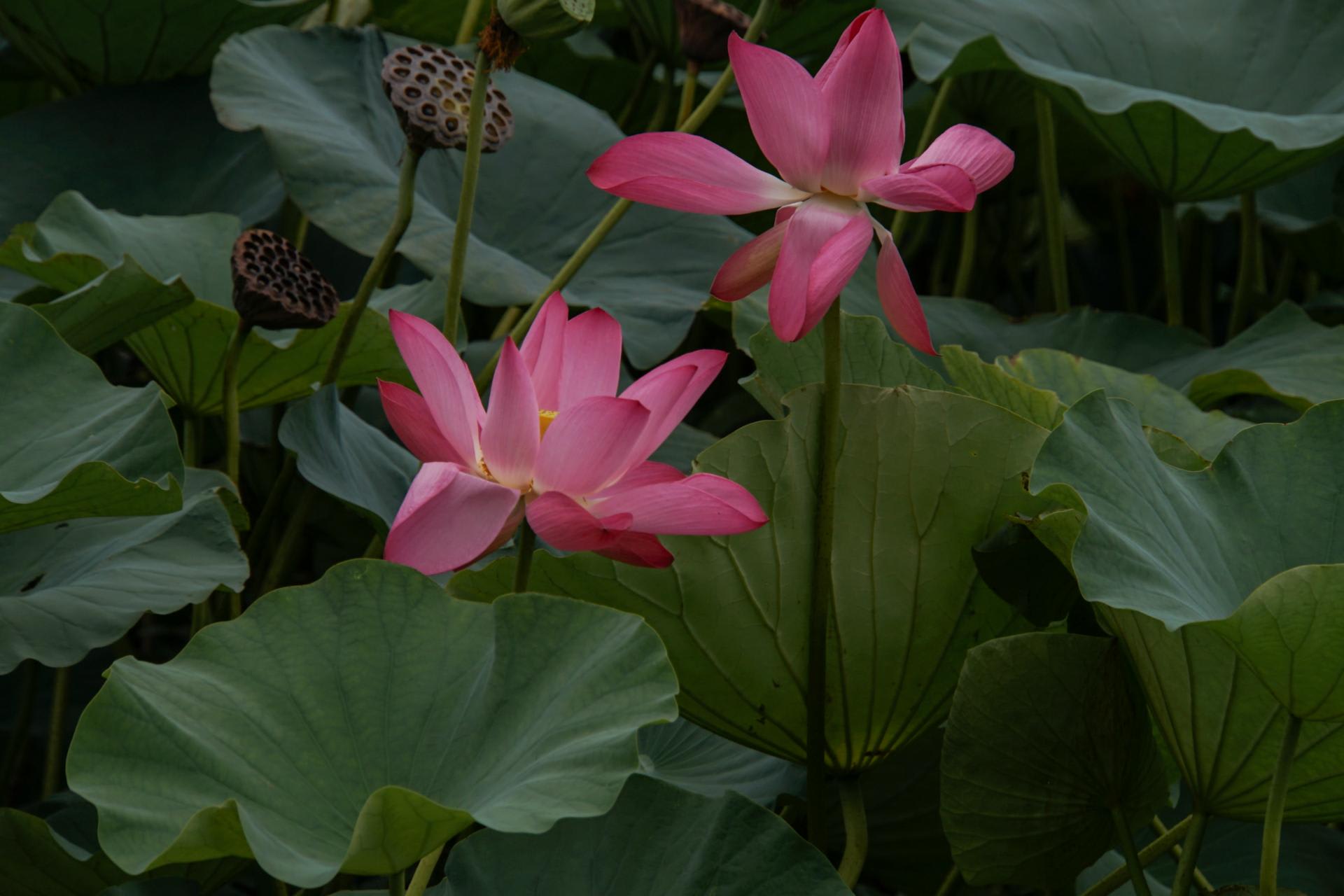新潟県阿賀野市の瓢湖はこの時期鬼蓮の花で水面が覆われる。