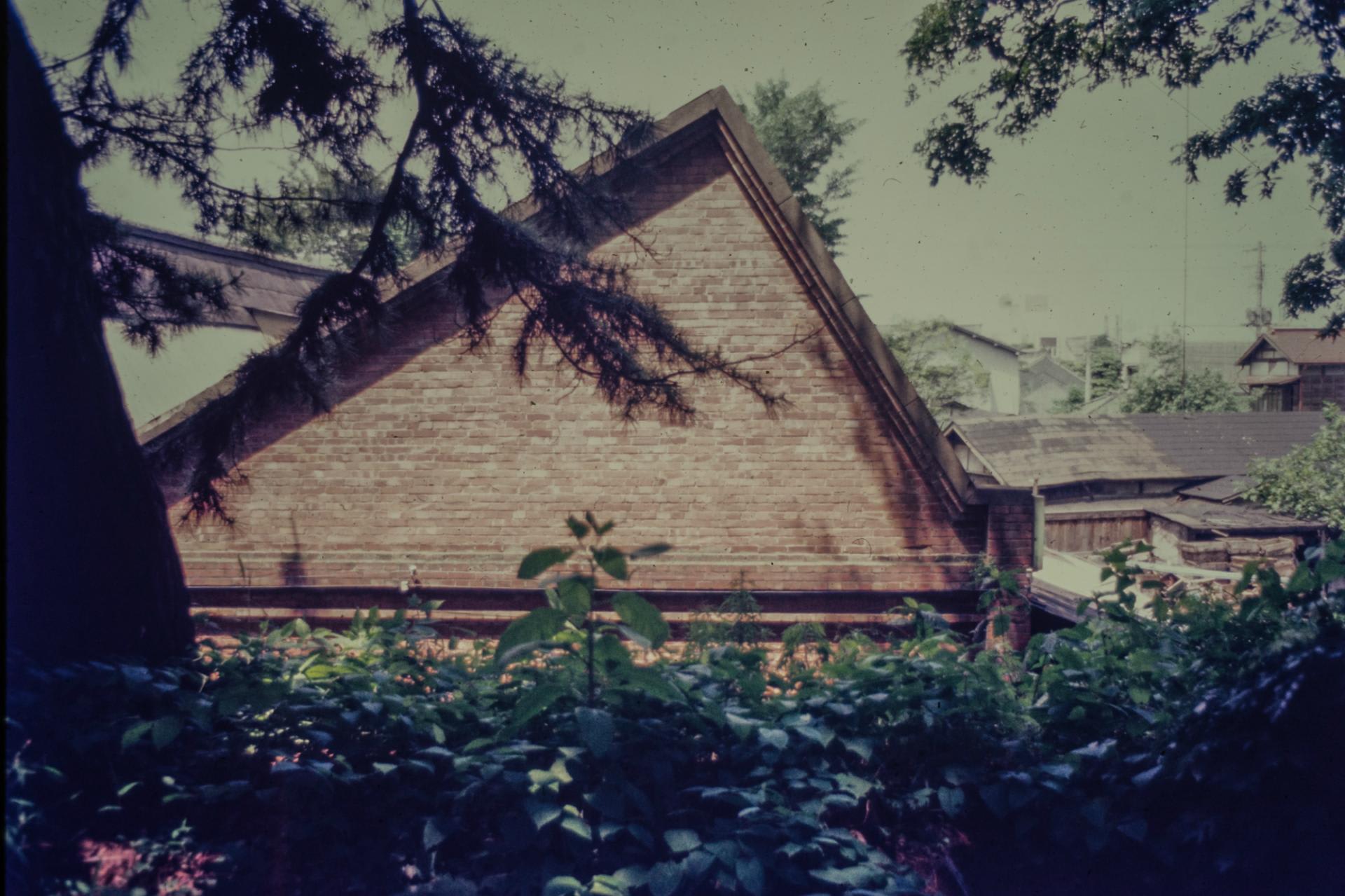 ルナパークの東側の坂下にあった上毛撚糸の工場のレンガの妻壁。当時あちこちに上毛撚糸の工場があった。
