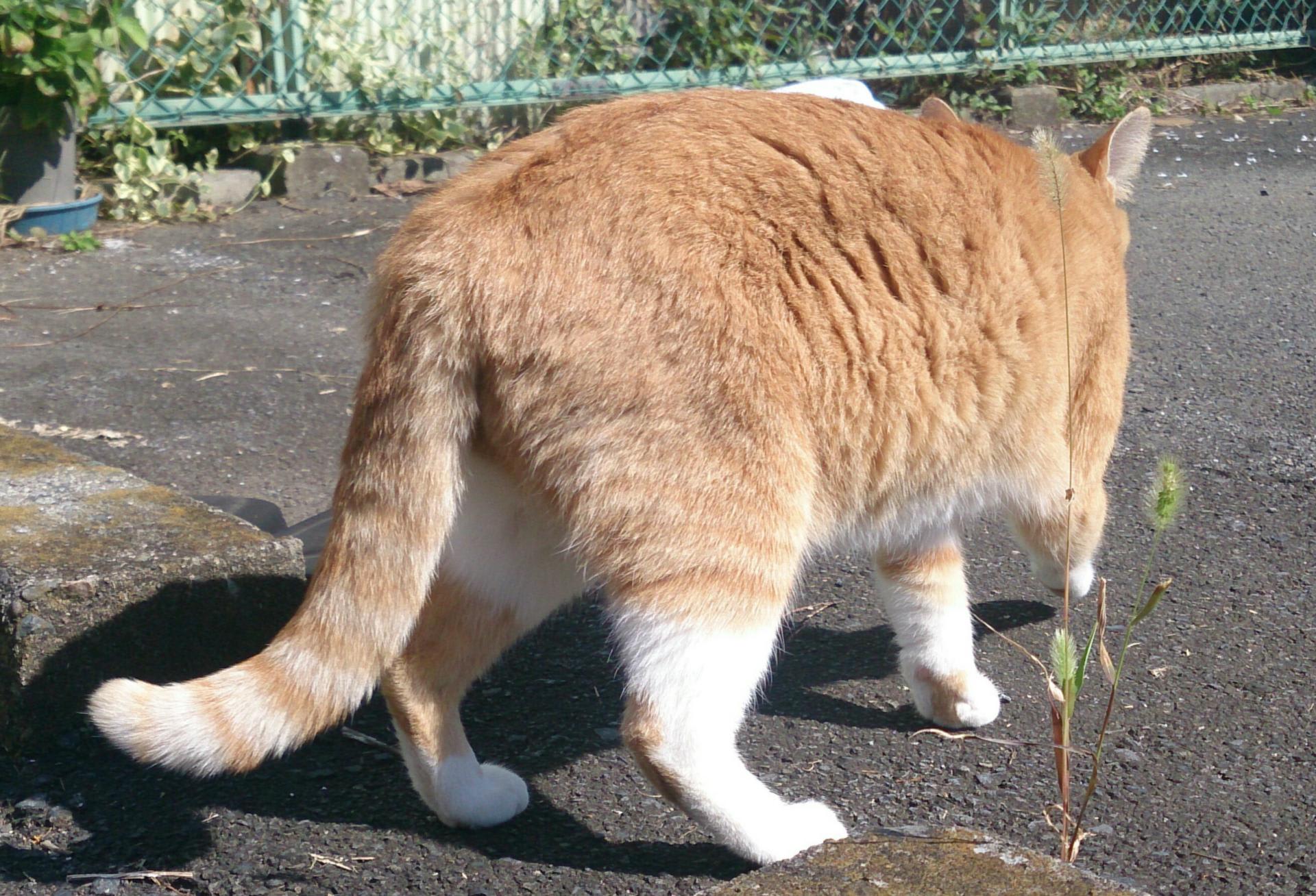 今日の猫は近所の飼い猫。後ろ姿に哀愁を感じる。2015年10月4日の撮影。
