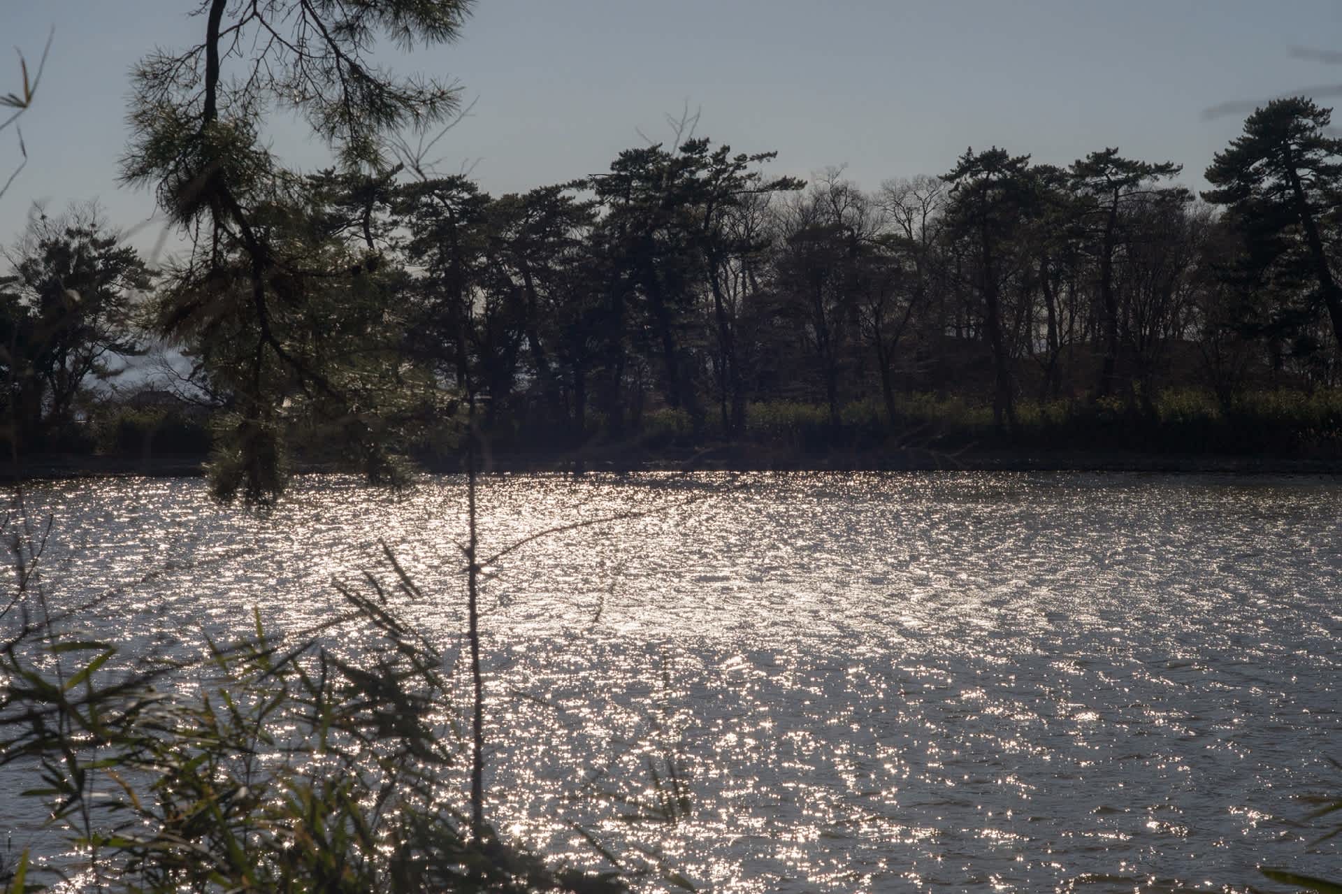 五料沼はキラキラ輝いている。水鳥の姿もちらほら。
