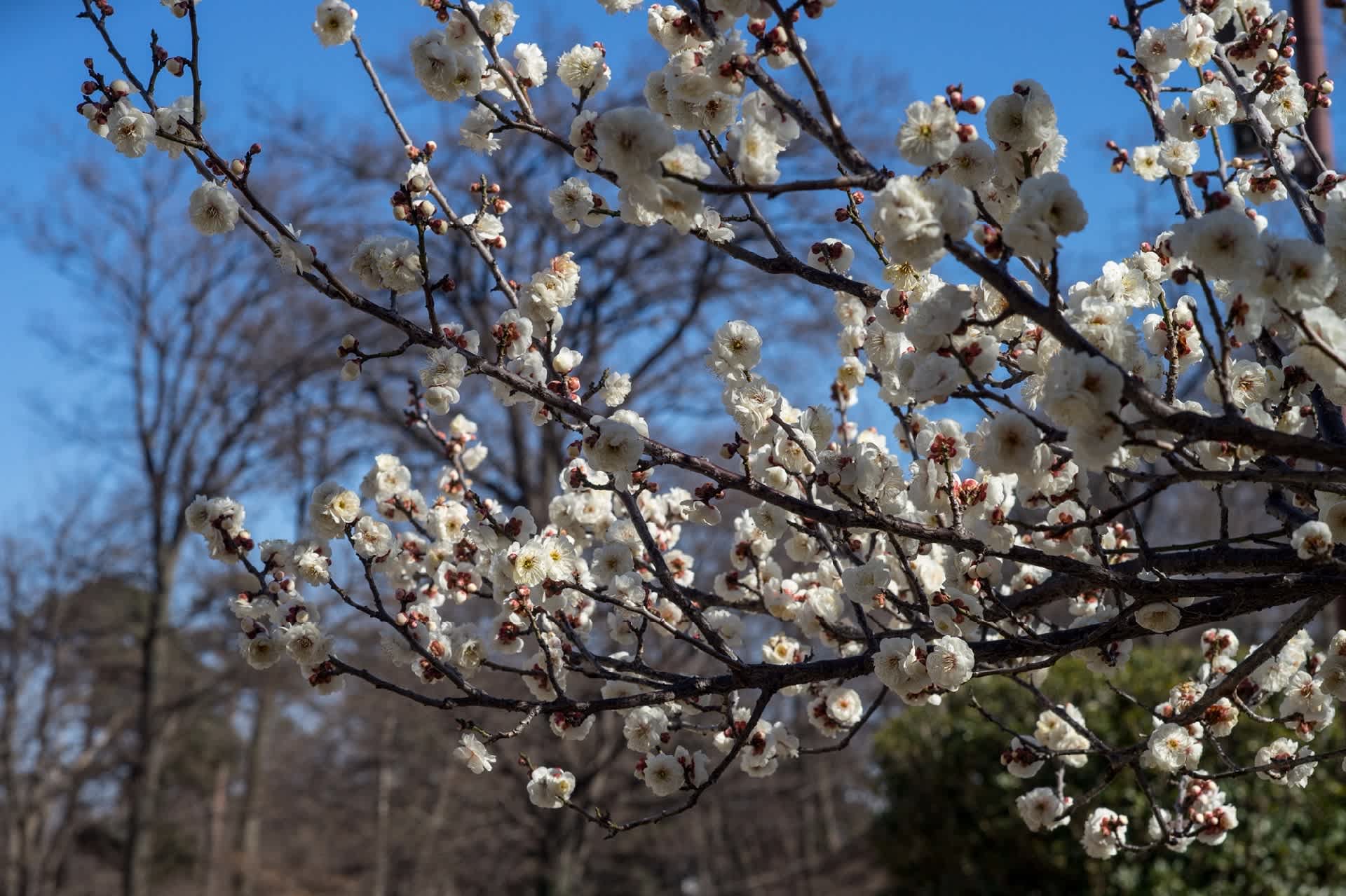 公園内の紅梅はもう終わり間近だが白梅は大きな花を咲かせている。