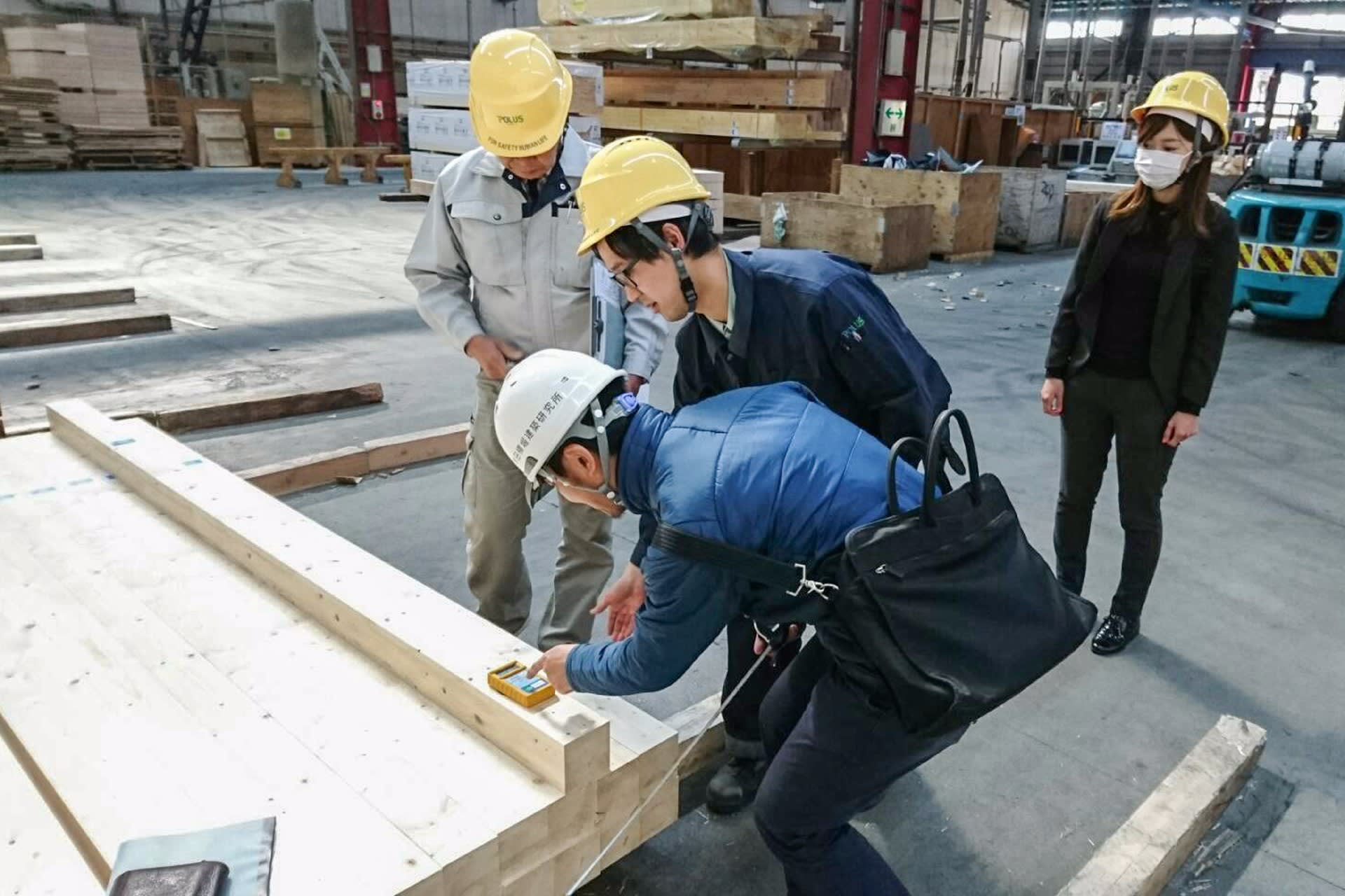 建方(上棟)を控えた現場の木材の製品状況と加工管理を確認に茨城県坂東市の工場に出張した。