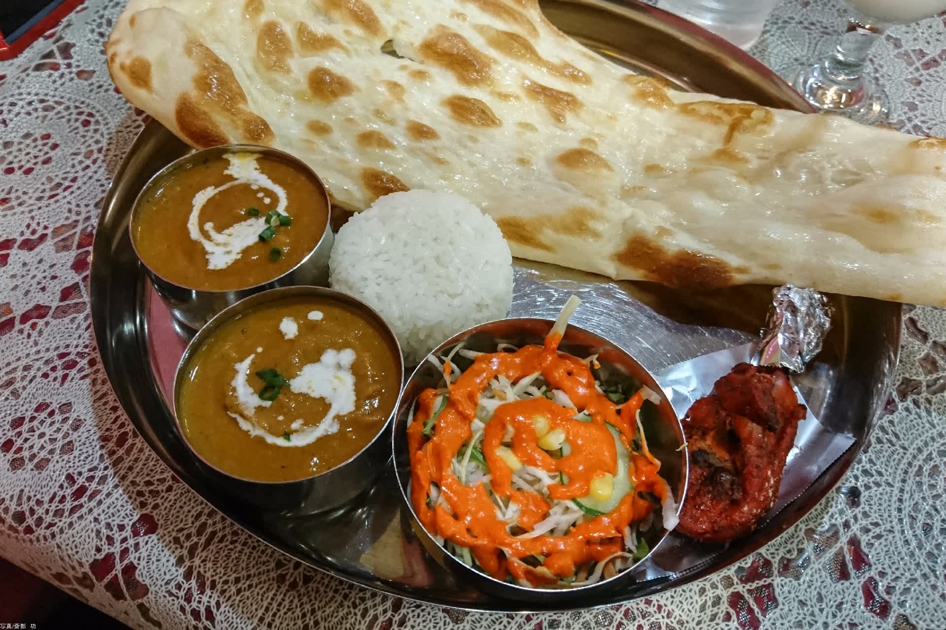 ナンを右手でちぎるのに四苦八苦しながらインドカレーを味わった。