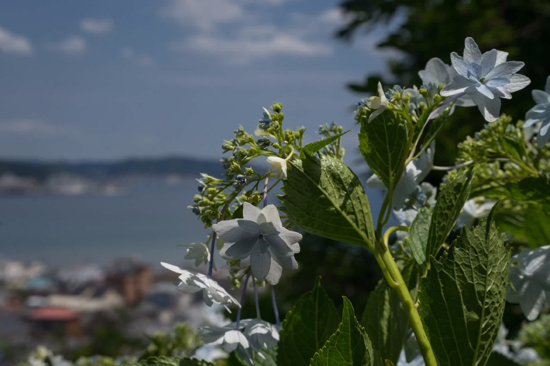 谷あいの明月院とは異なり、由比ヶ浜を見下ろす斜面の紫陽花も全く違う表情で面白い。