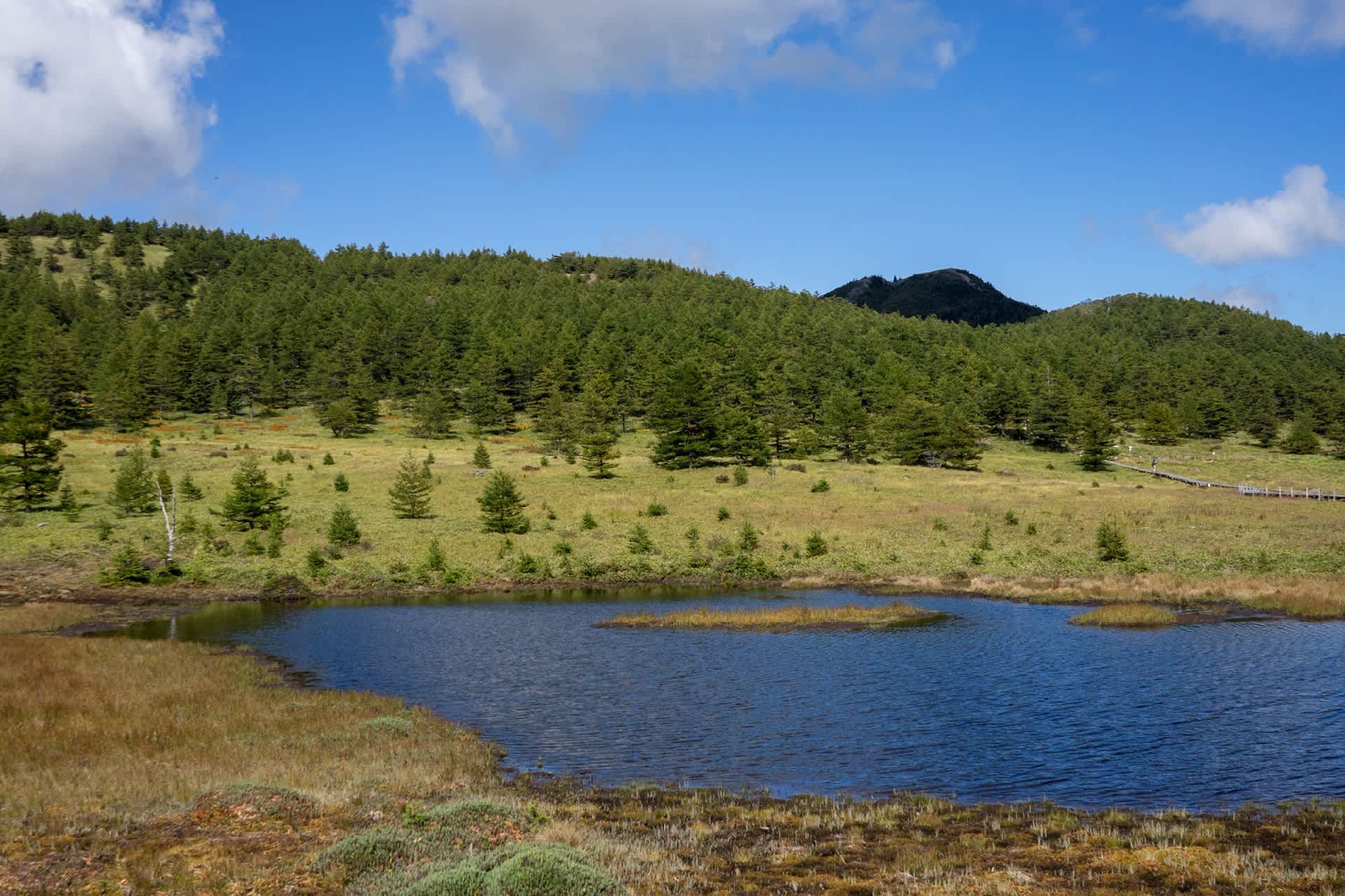 秋を探して信州の池の平湿原へ。台風一過、塵を払われた木々の反射が眩しい。本格的な紅葉までまだもう少し時間がある。
