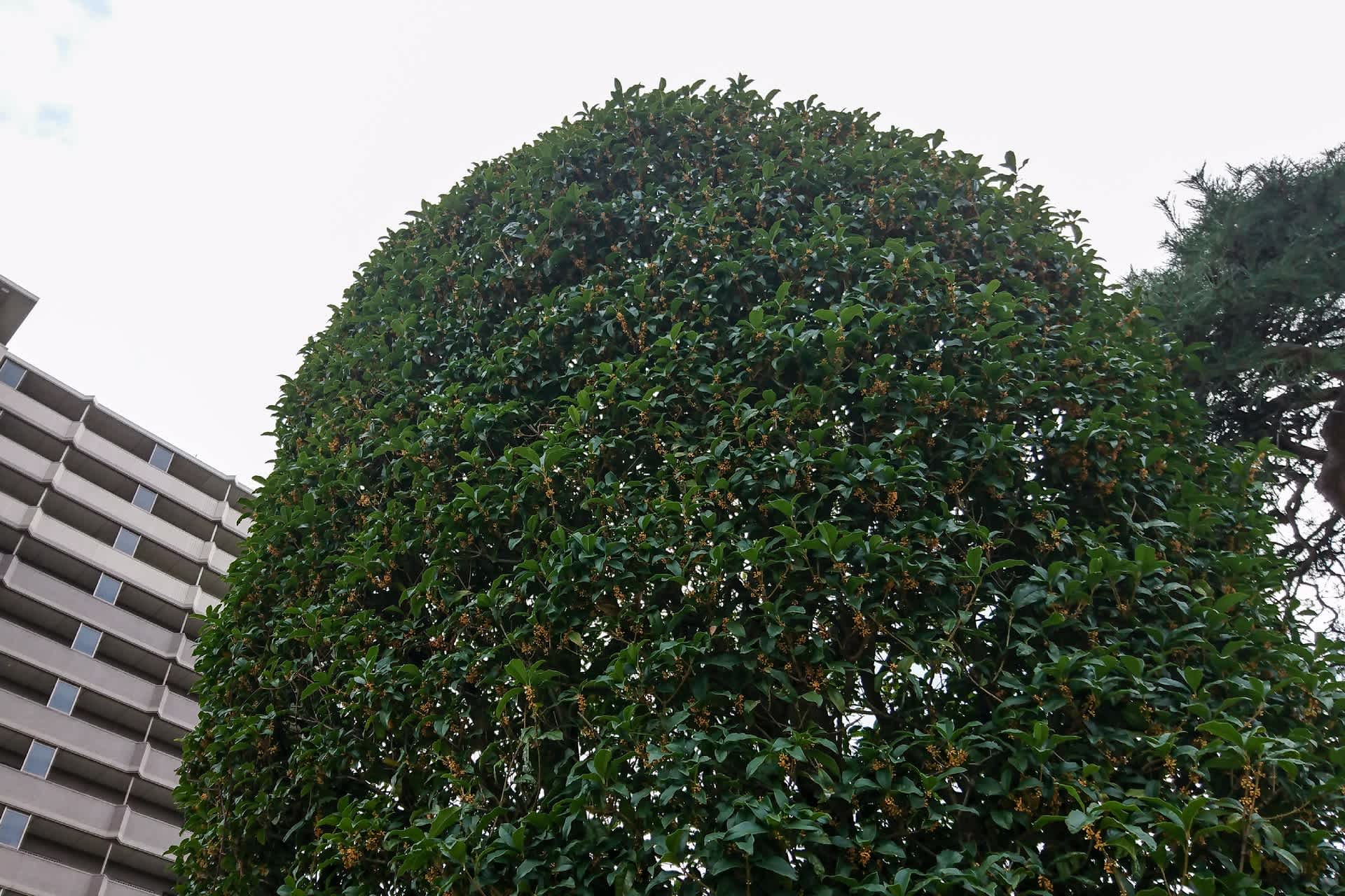 金木犀の香りが街に流れるようになった。今日金木犀の位置を探り当てる。大きな剪定された木だ。