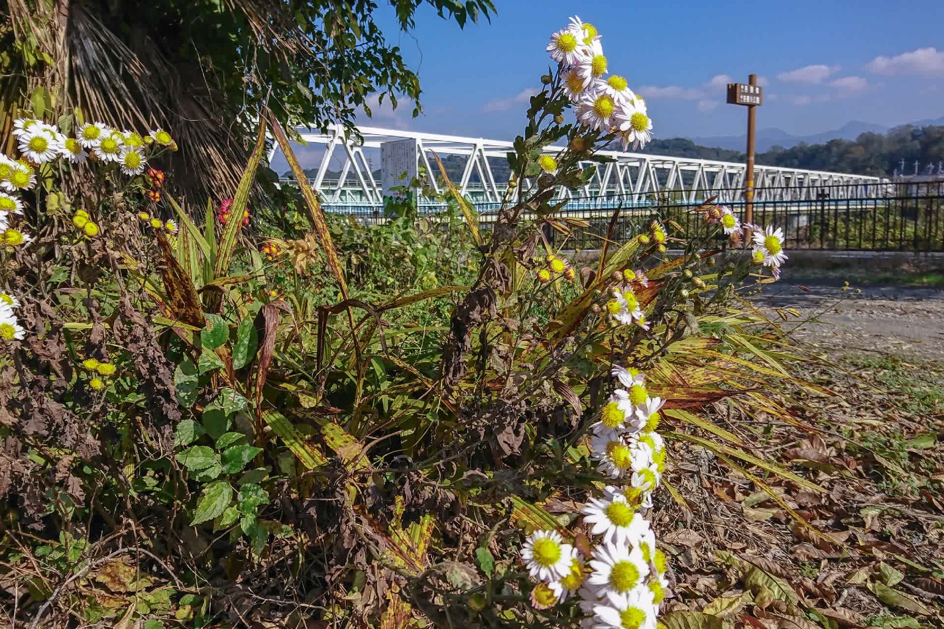 11月に入り、路端の花もめっきり少なくなった。但し沿道の民家の小菊が色鮮やかに咲いて入る。