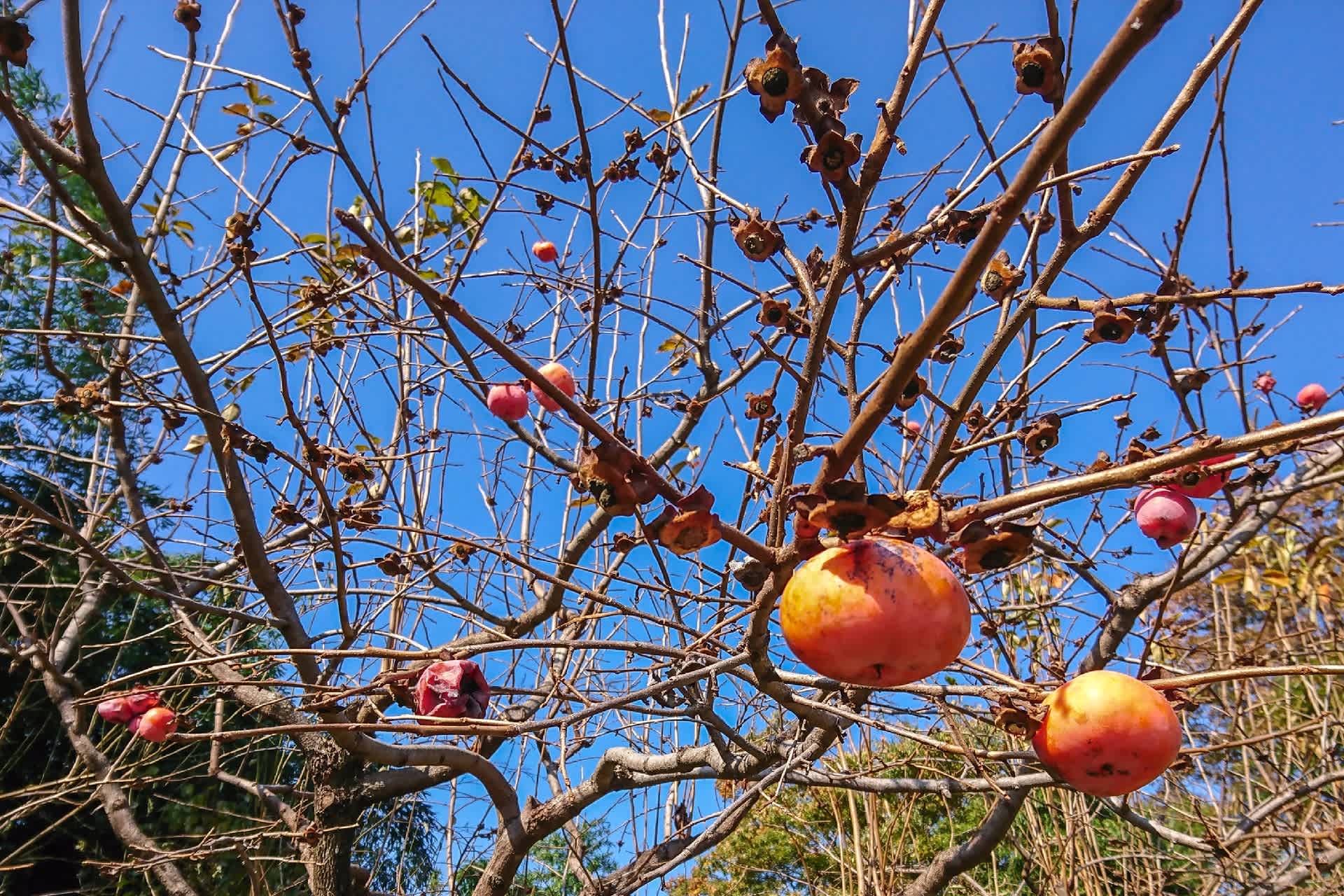 柿は枝に残ったまま熟れて落ちている木がある。もったいない。美味しそうだが持ち主もあることだろうから遠慮する。