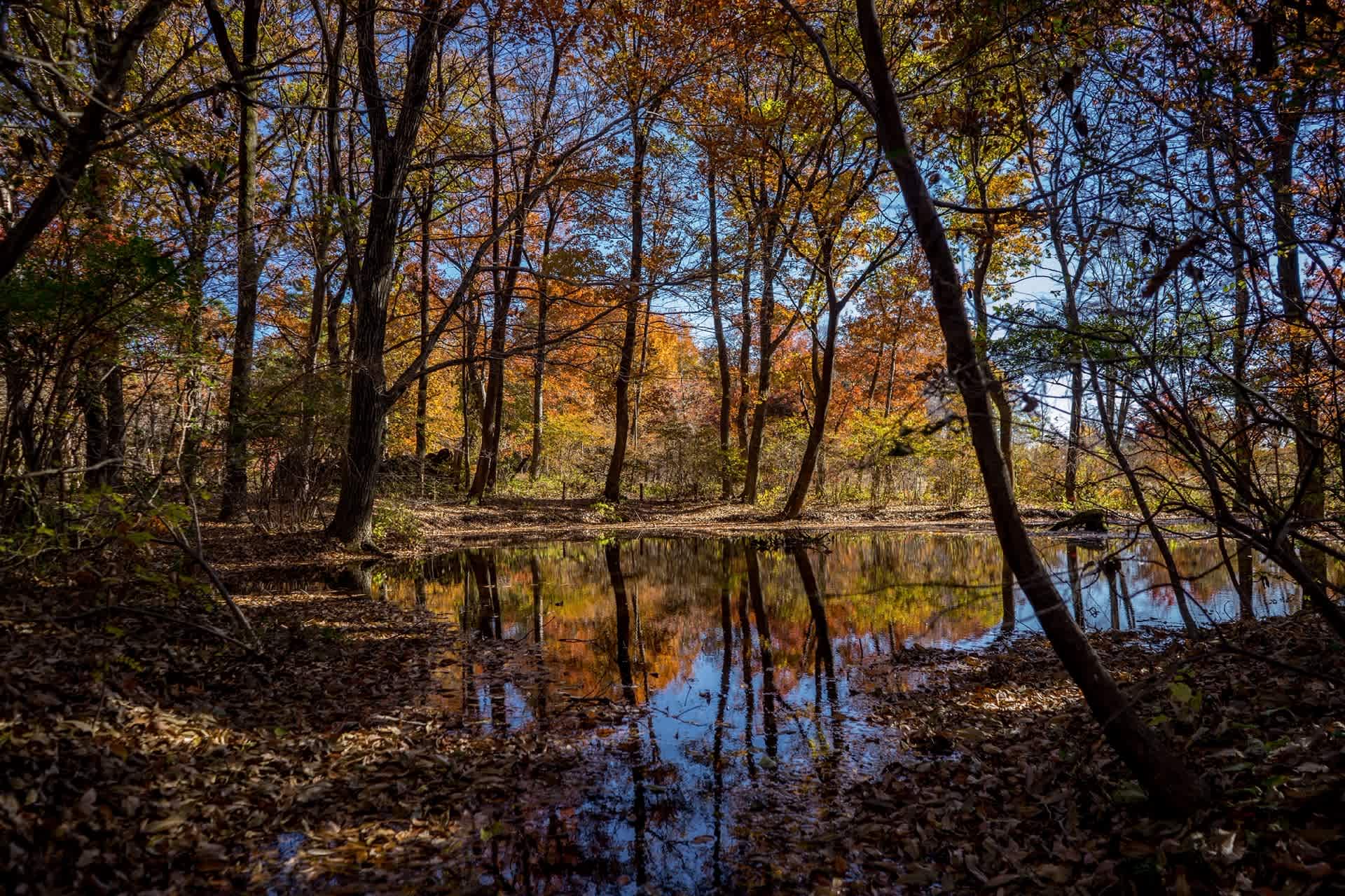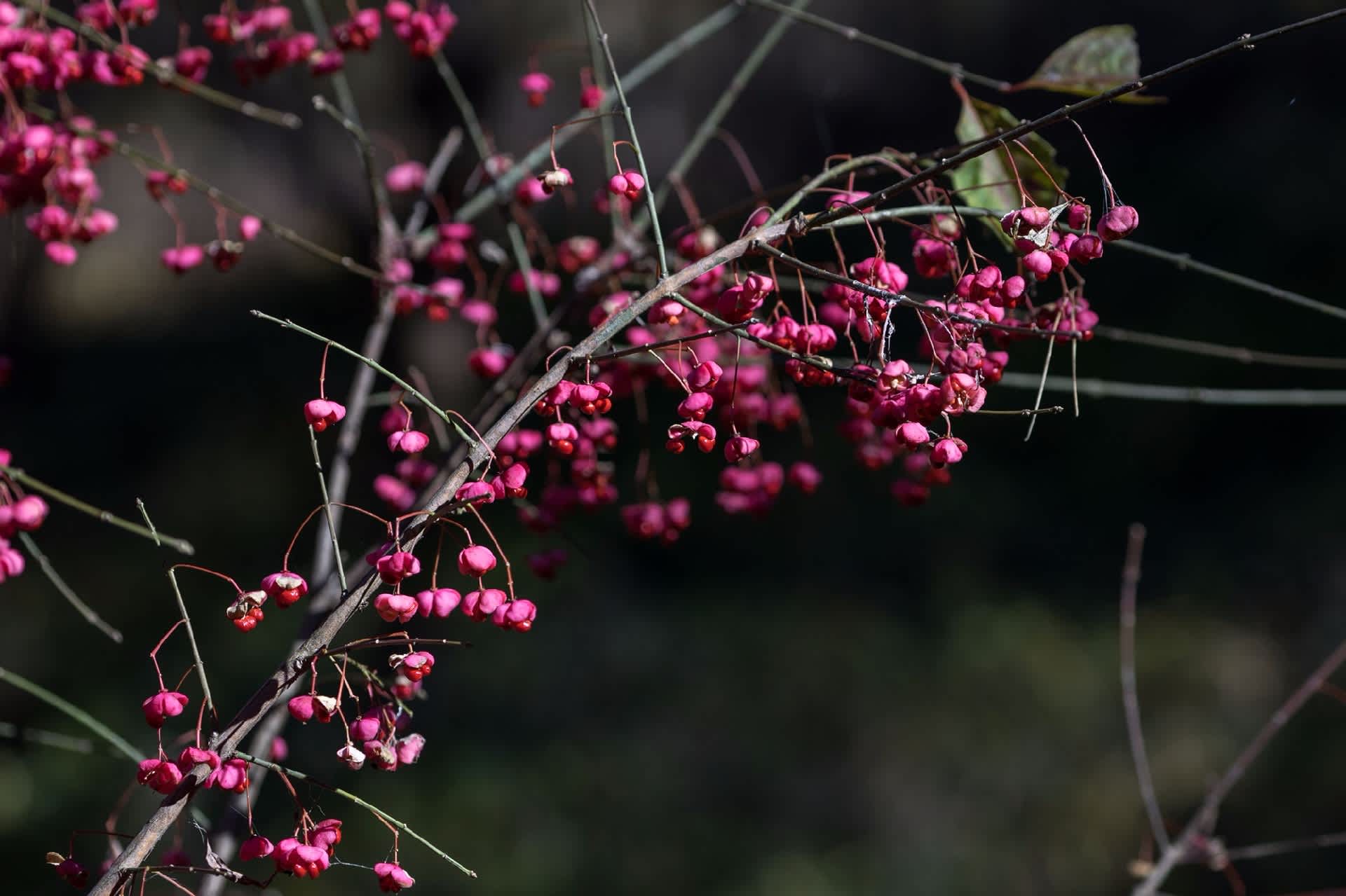 紅葉で華やかな森のなかではいろいろな種類の木の実もその色を競っている。これも楽しい。