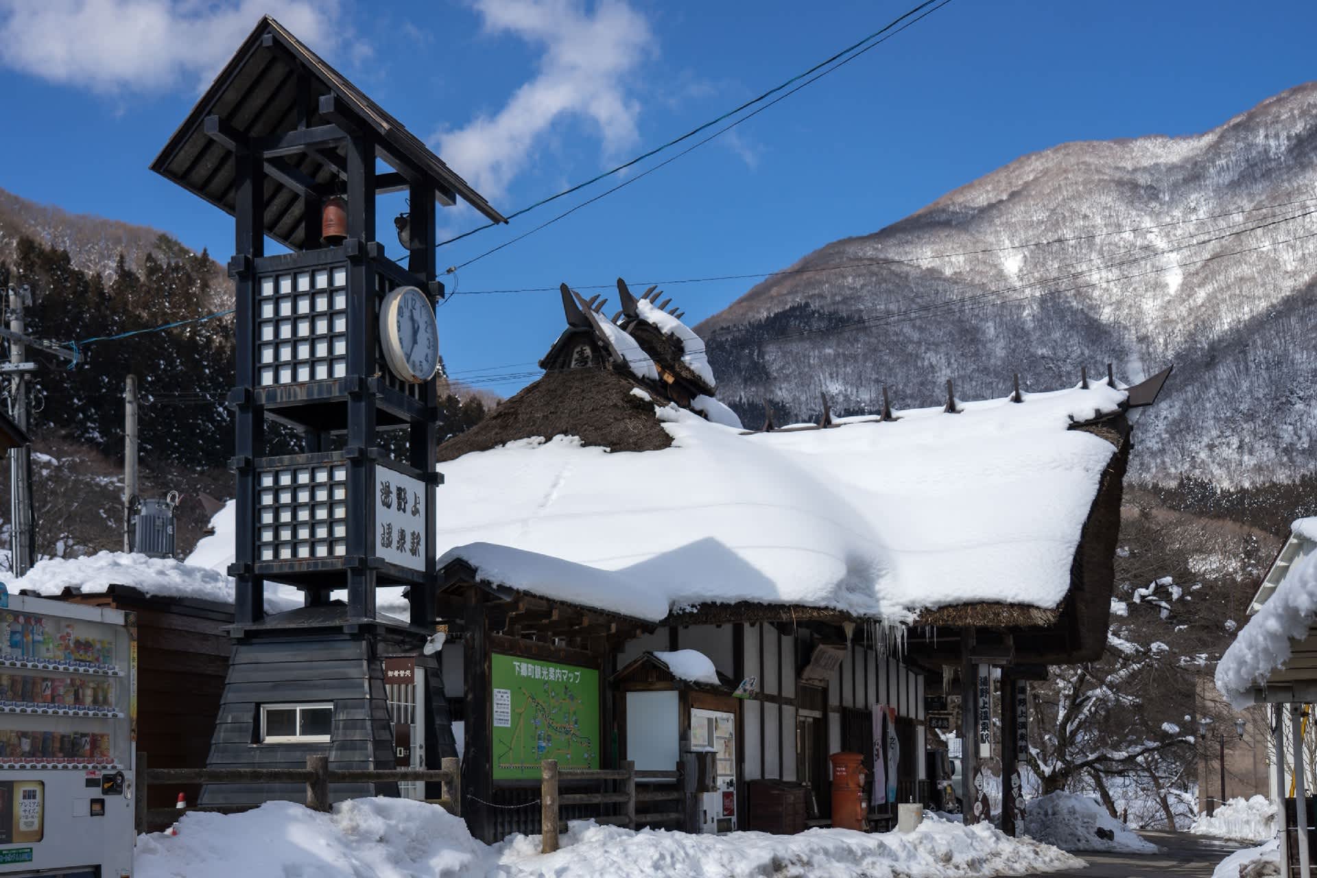 朝7時前に表通りに出る。雪の白さとまだ点いたままの外灯の対比が美しい。出勤前の準備が始まり、又1日が始まるといったところ。朝焼けも一時見られたのに宿を出る頃には雪がどんどん降ってきた。駅までほとんど路面が見えない。湯野上温泉駅は全国で唯一茅葺屋根の駅舎だそうだ。囲炉裏もある。前橋に戻っても囲炉裏の焚き火の匂いだしばらく残った。楽しかった時間の記憶とともに少しずつ消えていった。