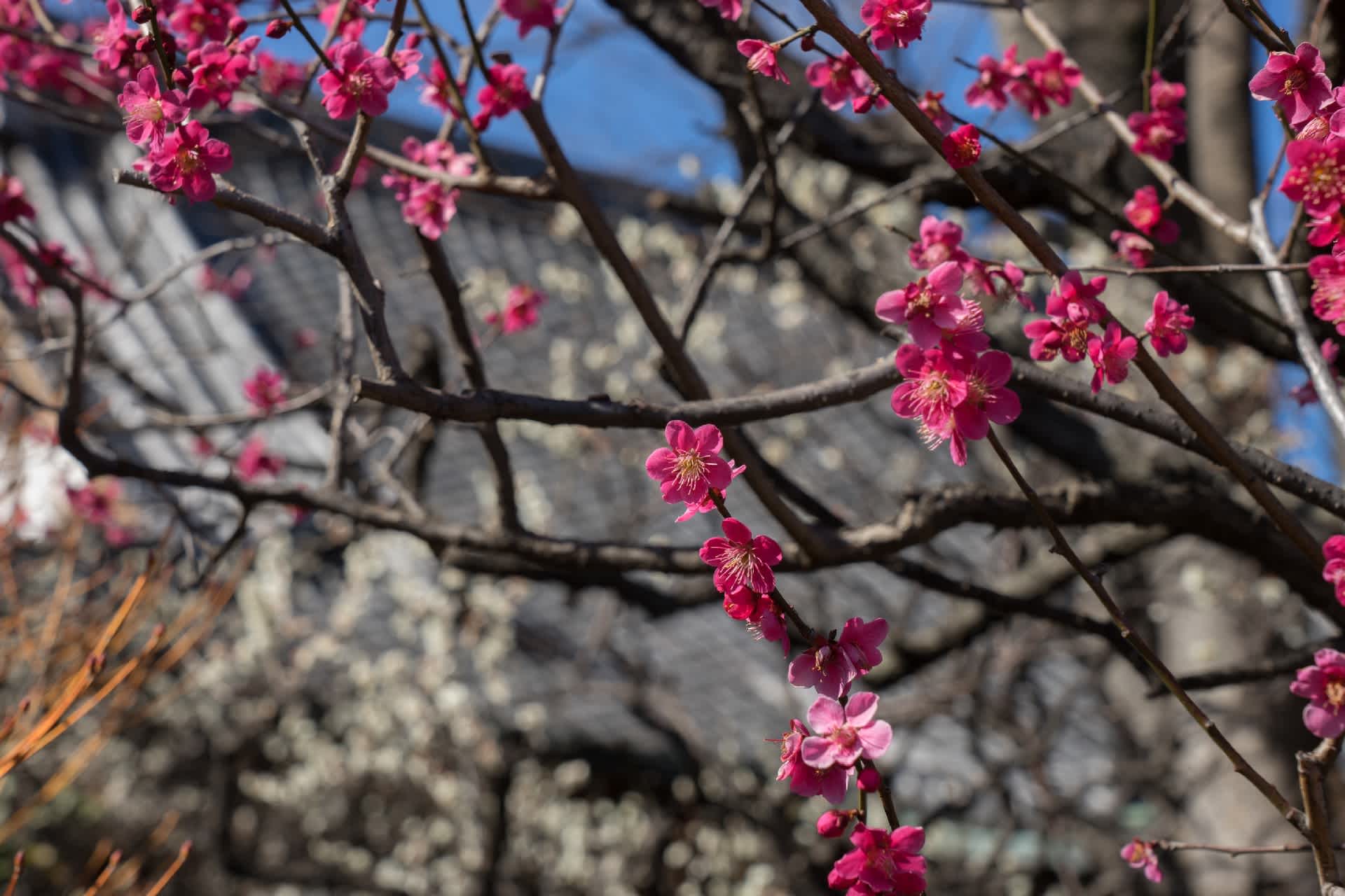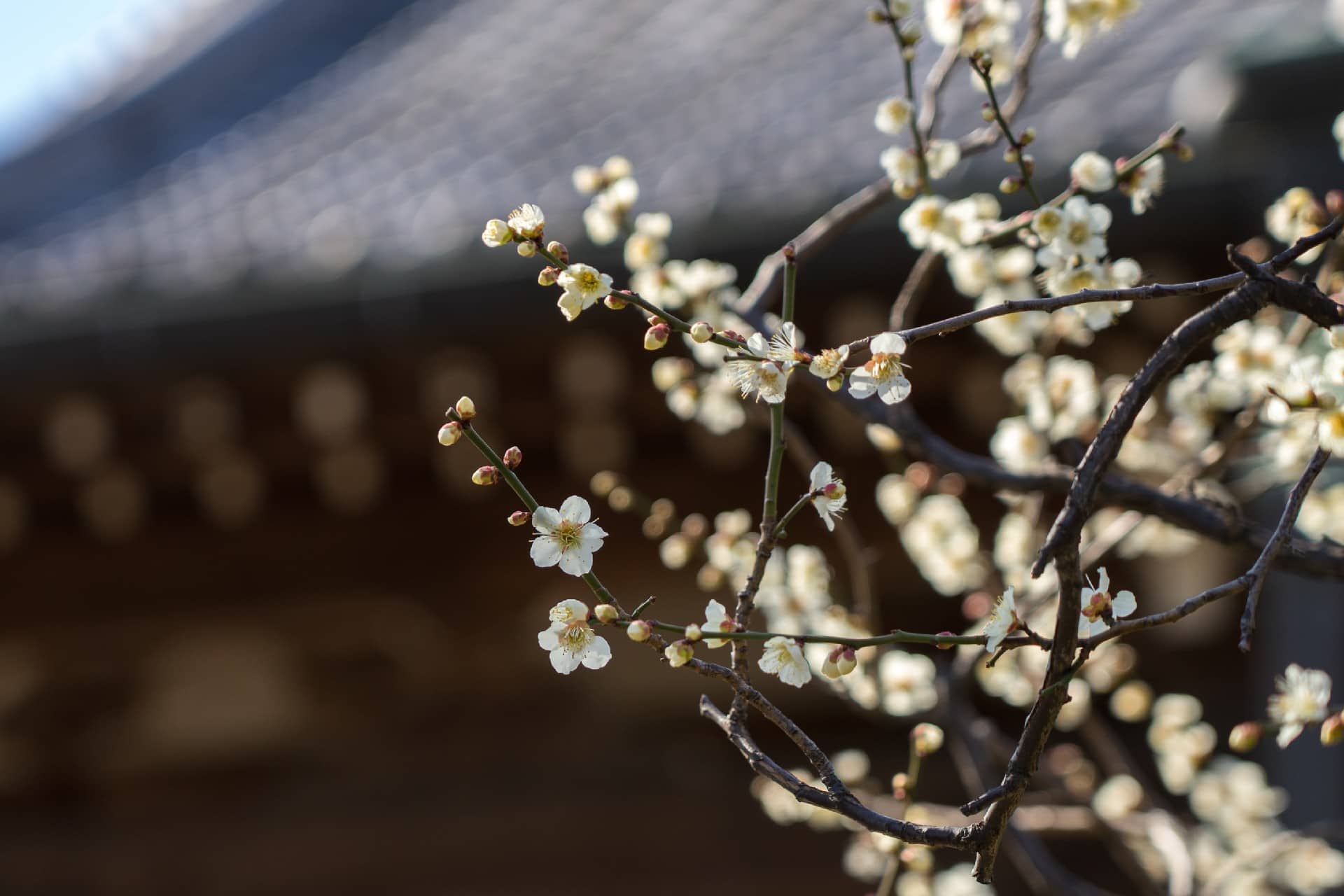 さらに路地を歩くと瑞円寺の下に出た。入り口の坂道も脇には立派枝垂れの紅梅」があり、誘われるように境内に入ると白梅もちょうど見頃。ちょっとしたお花見気分で散歩も愉しむ。