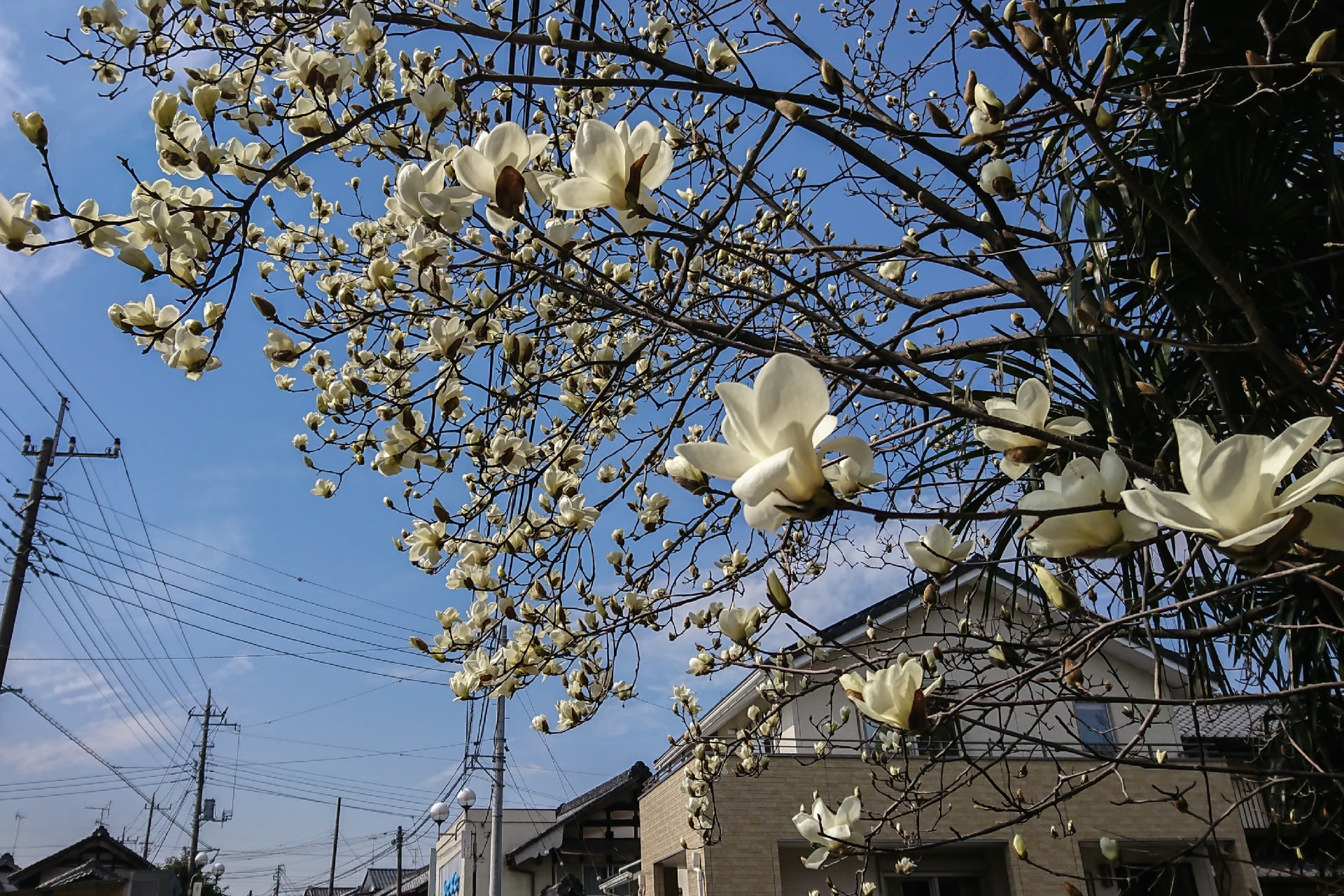 飛ばしすぎて渡し船の乗船場を通り過ぎ引き返す。もっともそのおかげでおおきな白木蓮の木に出会う。春が来たと実感させる花。
