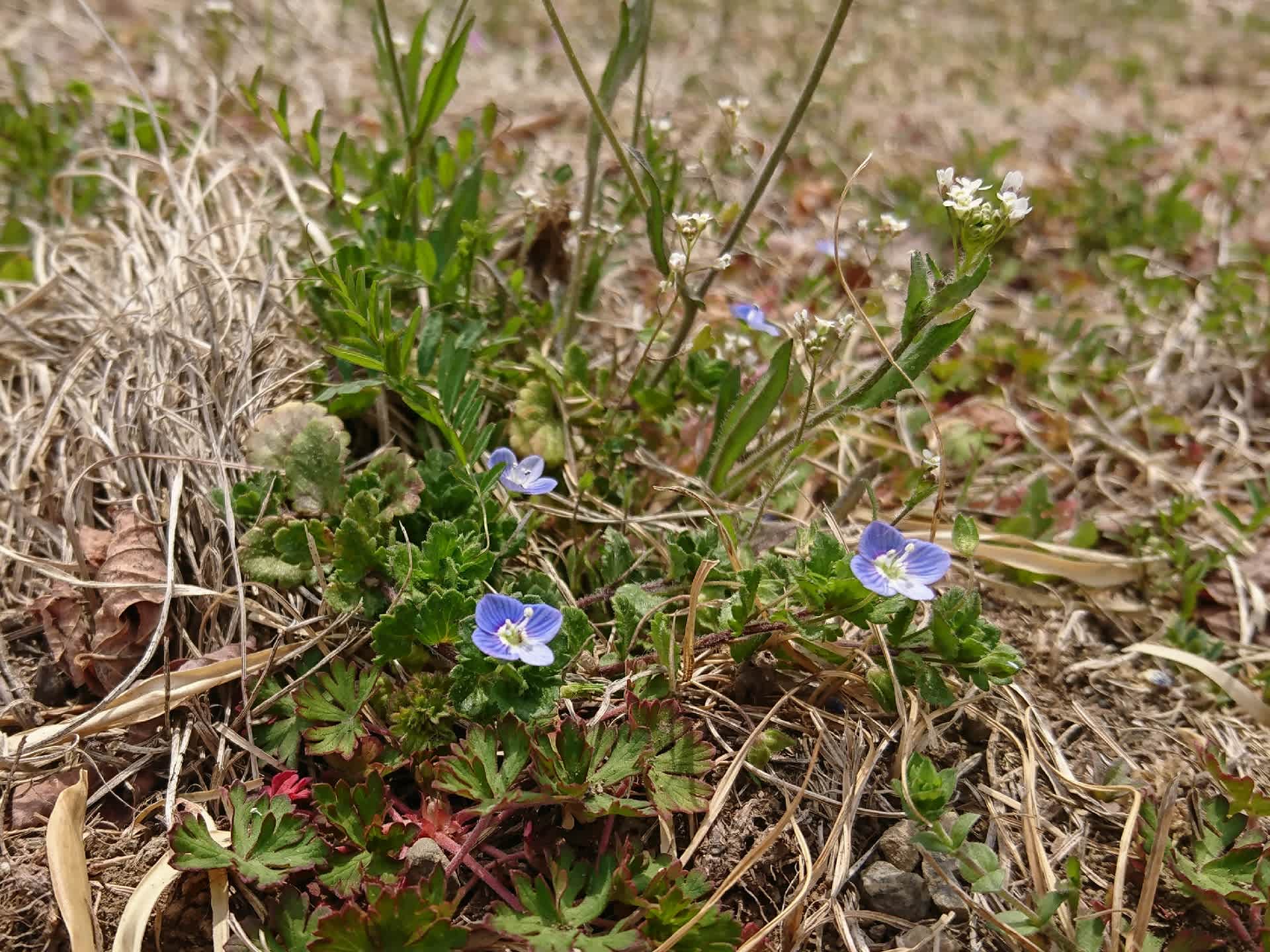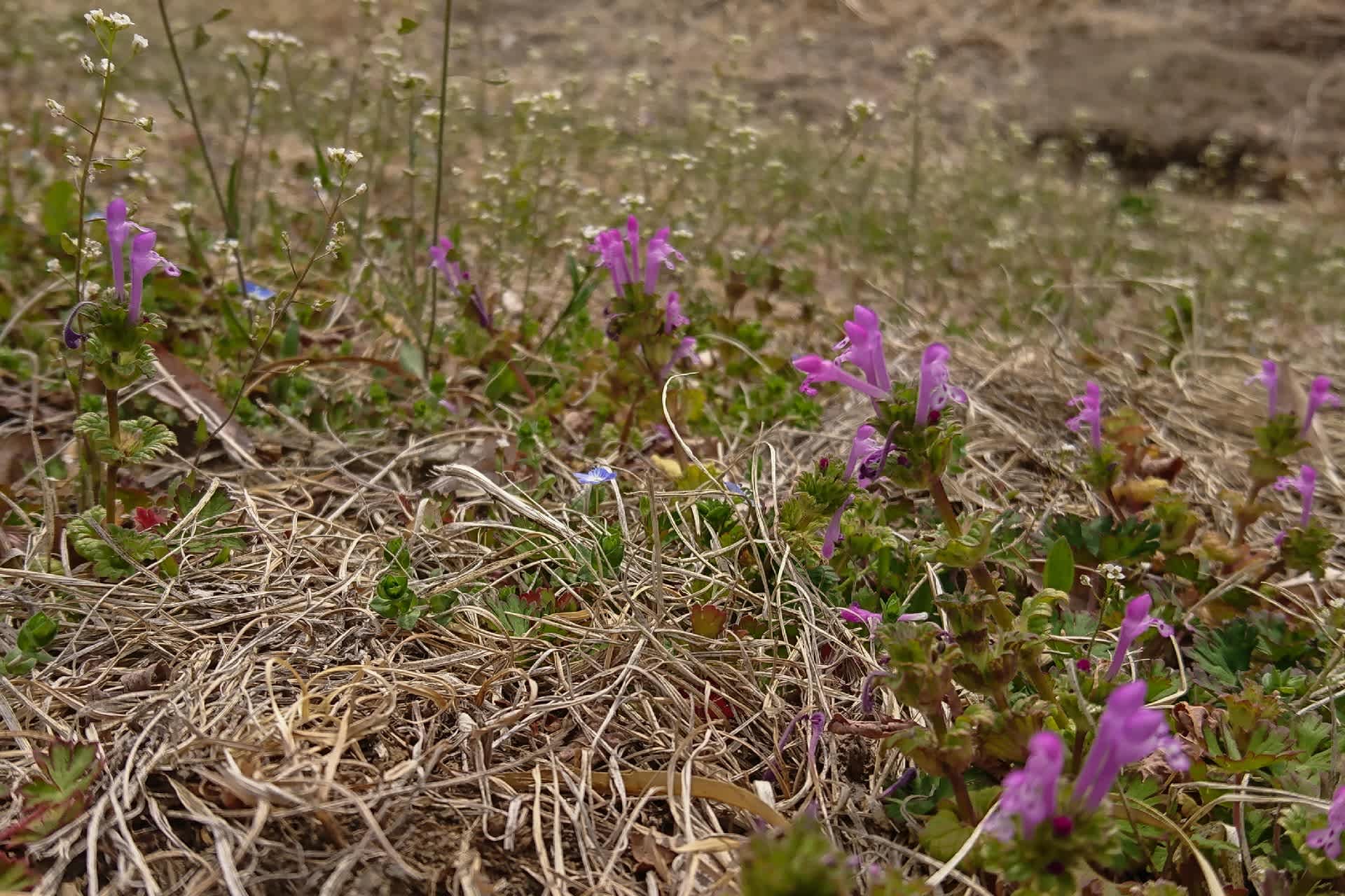 畦にはオオイヌノフグリやホトケノザ、タンポポそして菜の花が目立つようになってきた。