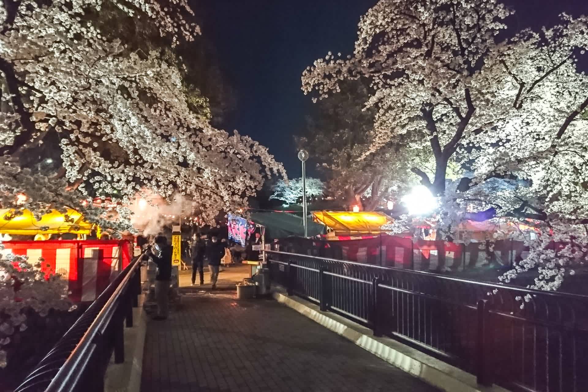 夜桜はあたりの不浄なものを消してただ花だけが浮かび上がる。今年の前橋公園のライトアップは変な着色もなく、これも良い。