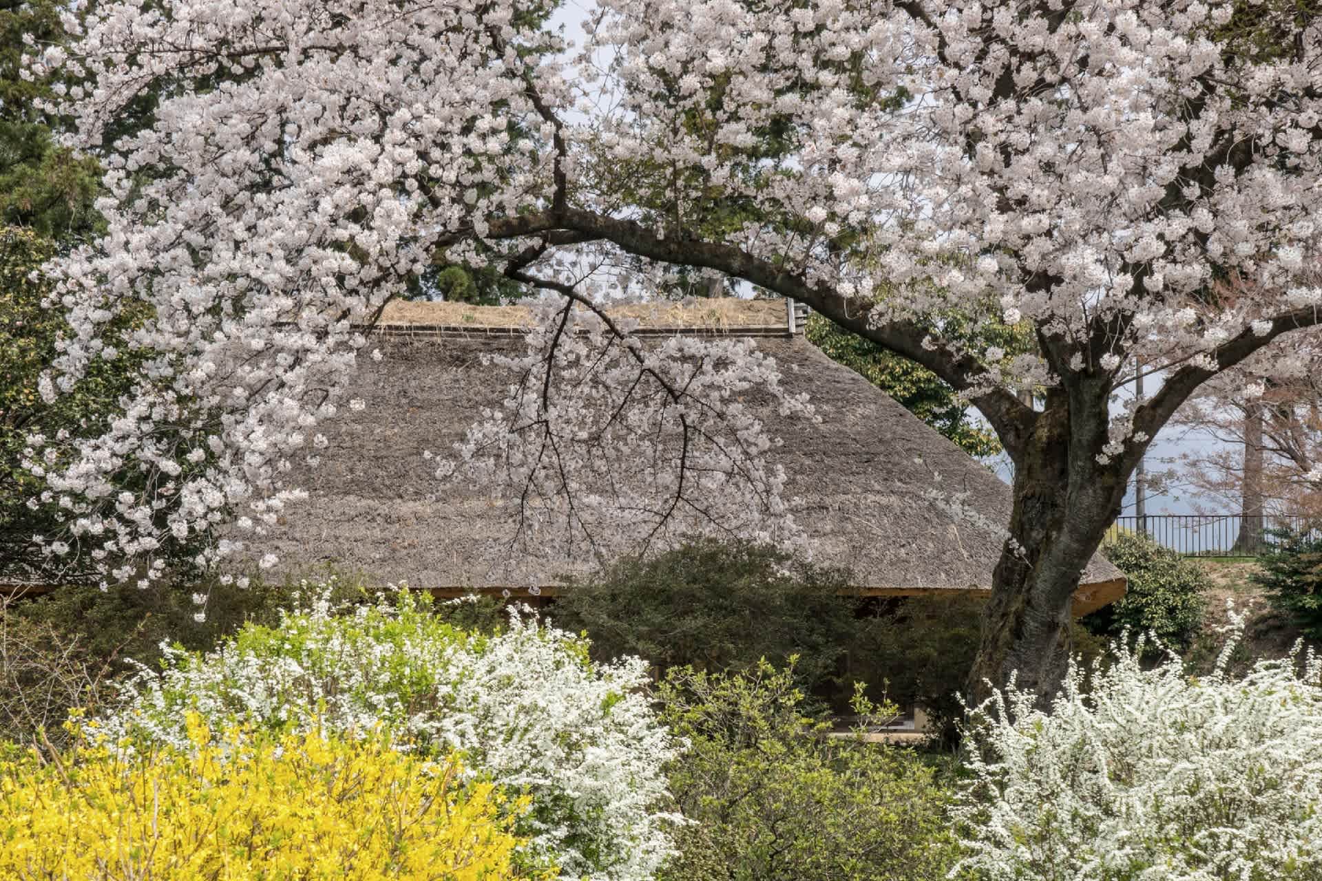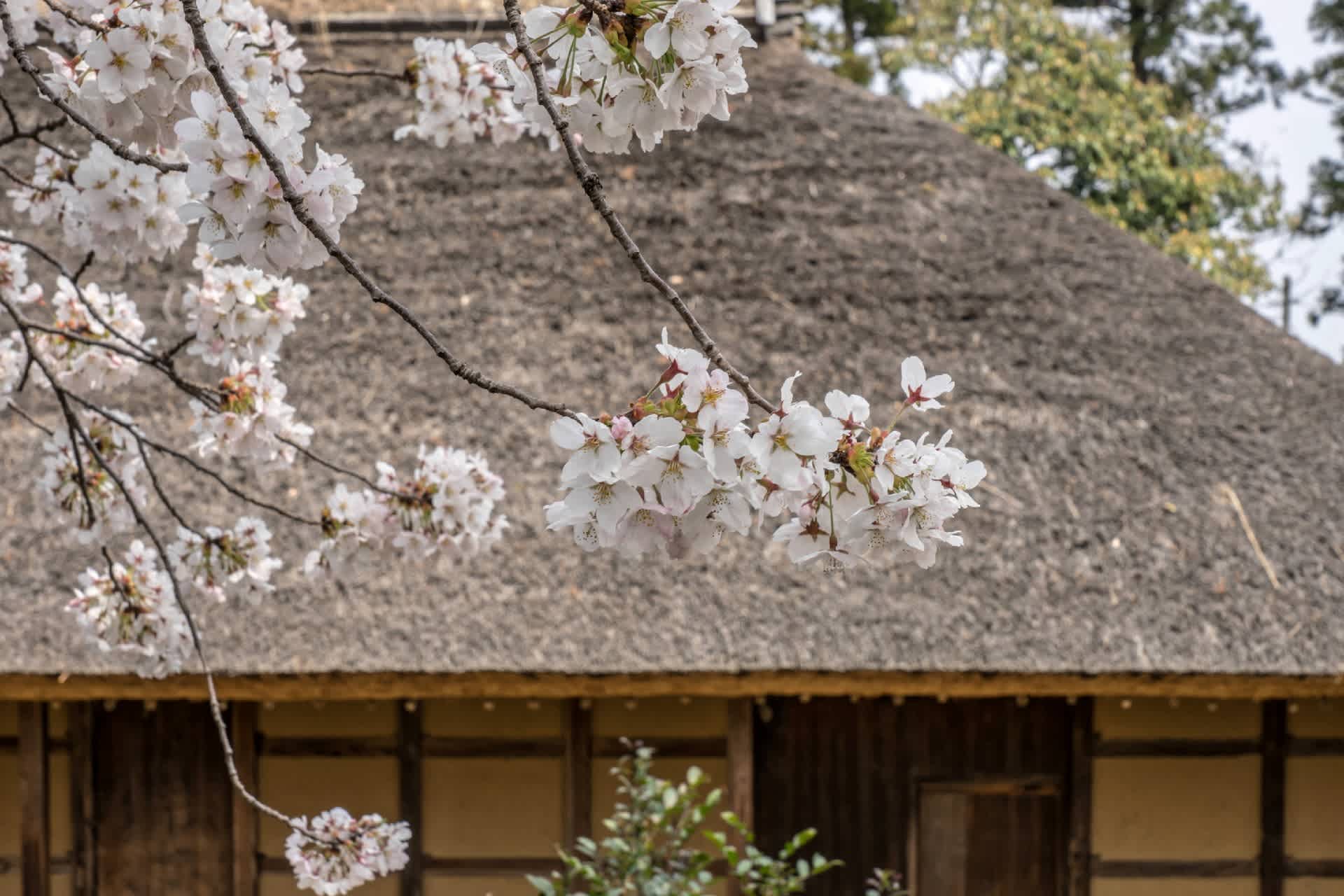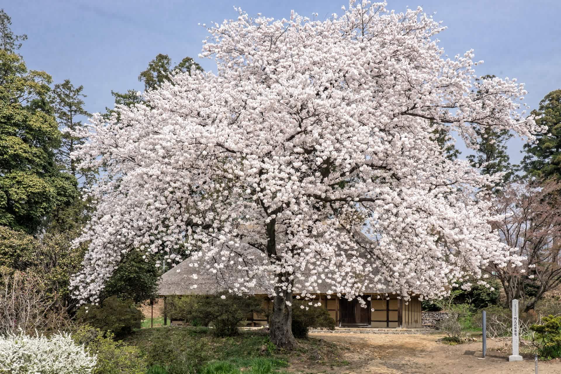 阿久沢家住宅 国指定重要文化財(前橋市)は江戸初期の原型が復元されているが大きな桜の木が植えられている。