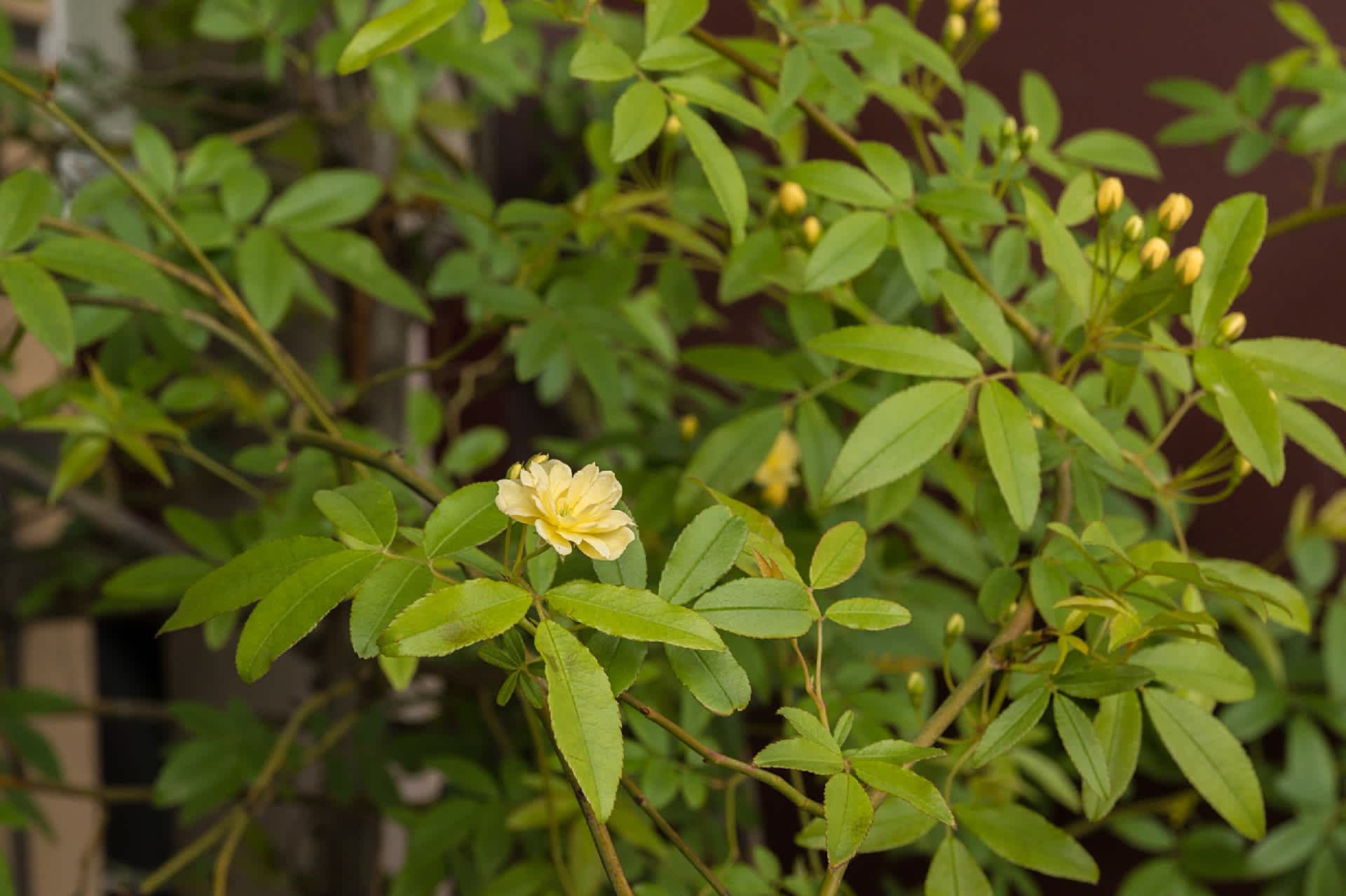 事務所の木香薔薇が咲く。鉢植えにもかかわらずもう15年位居座っている。やはり今年は早い。江ノ島電鉄のような淡い黄色と緑が今年も見られる。