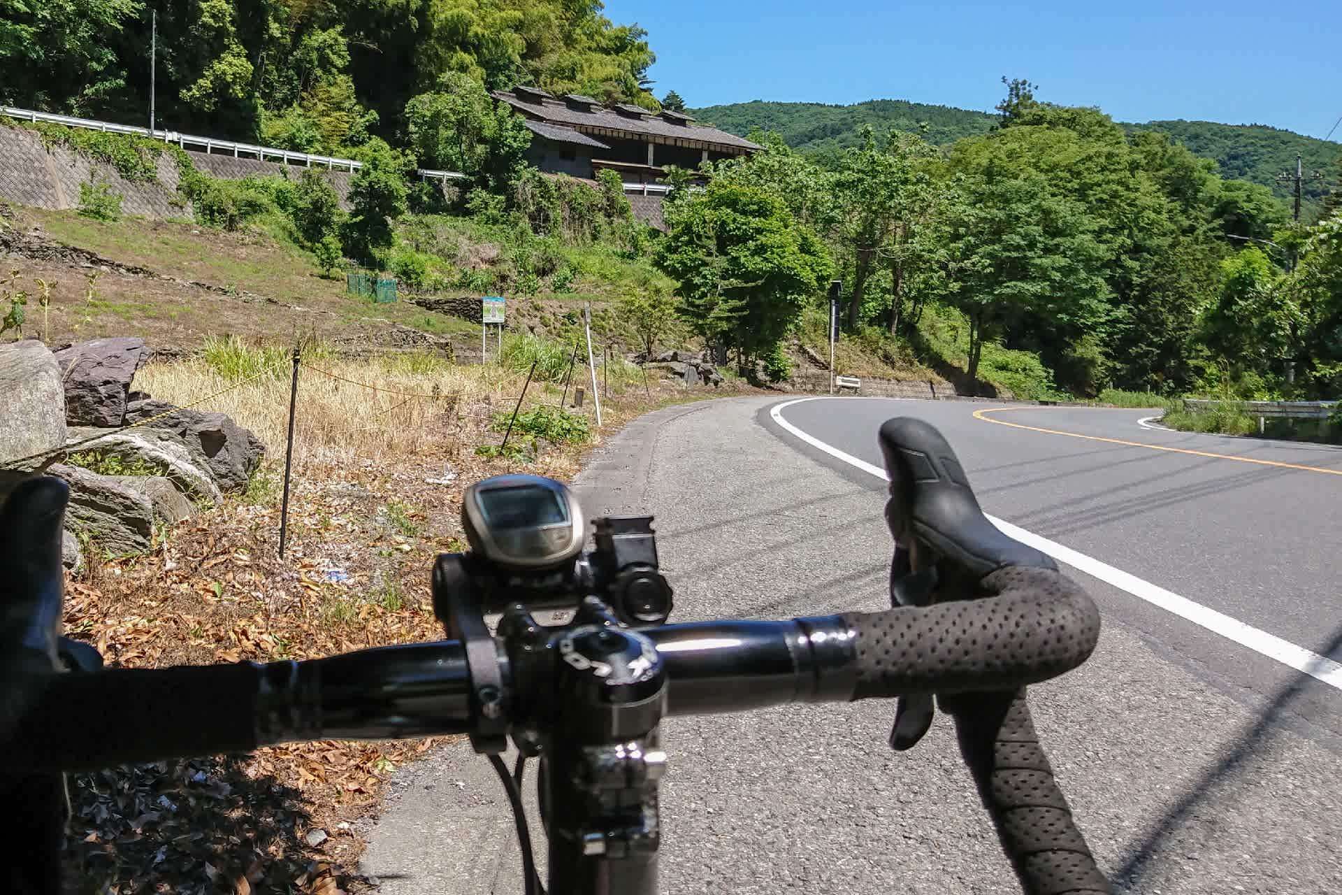 からっとして初夏らしい1日、児玉の「二松菴」にそばを食べに杉の峠を越える。この峠は登り3km程度の小さな峠だが左カーブではイン側にとんでもない勾配。それでものろのろ登りきり、児玉側は気持ちの良い下り勾配。法定速度程度で丁寧に下る。