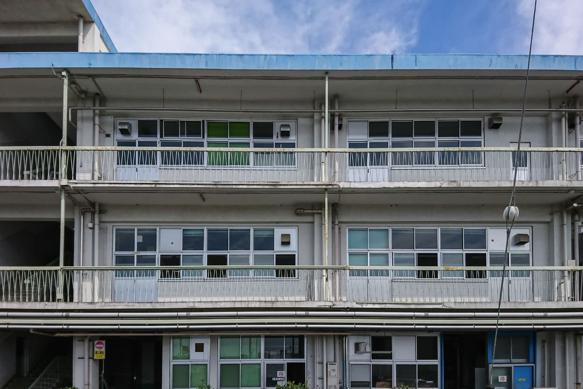 この棟は実習棟なので工場のような造りで一般校舎と違って梁間方向2スパンで中廊下もあるがもっぱら移動はバルコニーだった。階段もアパートのような外部階段。