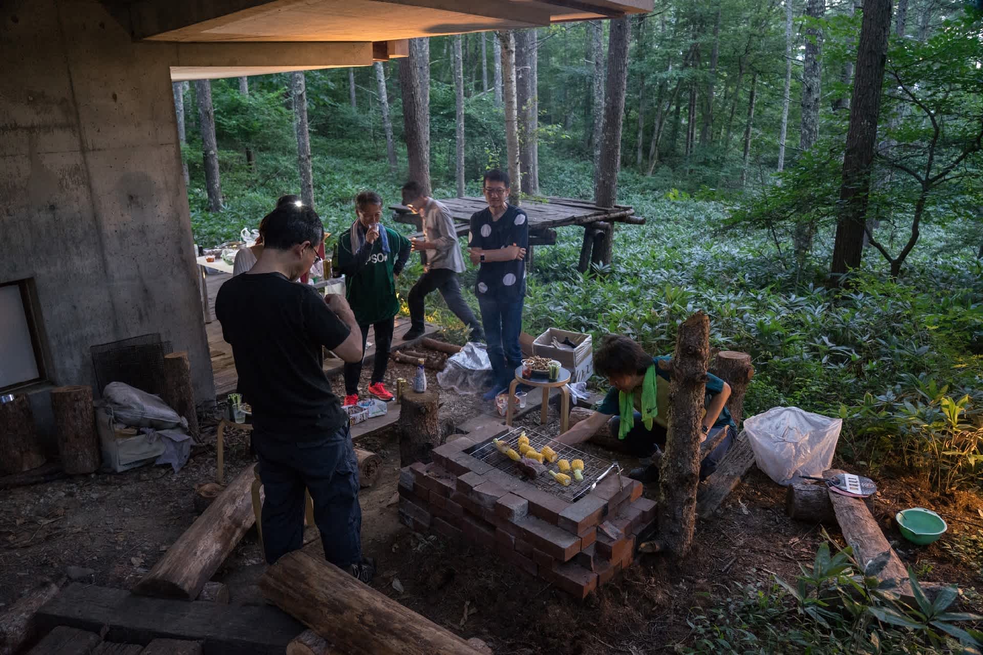 今日の納涼会は食材の買い出しから始まり下ごしらえ、調理と和気あいあいと進んだ。中心はやはり中澤さん、会場は中澤さんの出身である工学院大学関係者の山の家。建築家らしい山荘であり楽しいひと時を過ごすことができた。設営された会員に感謝。