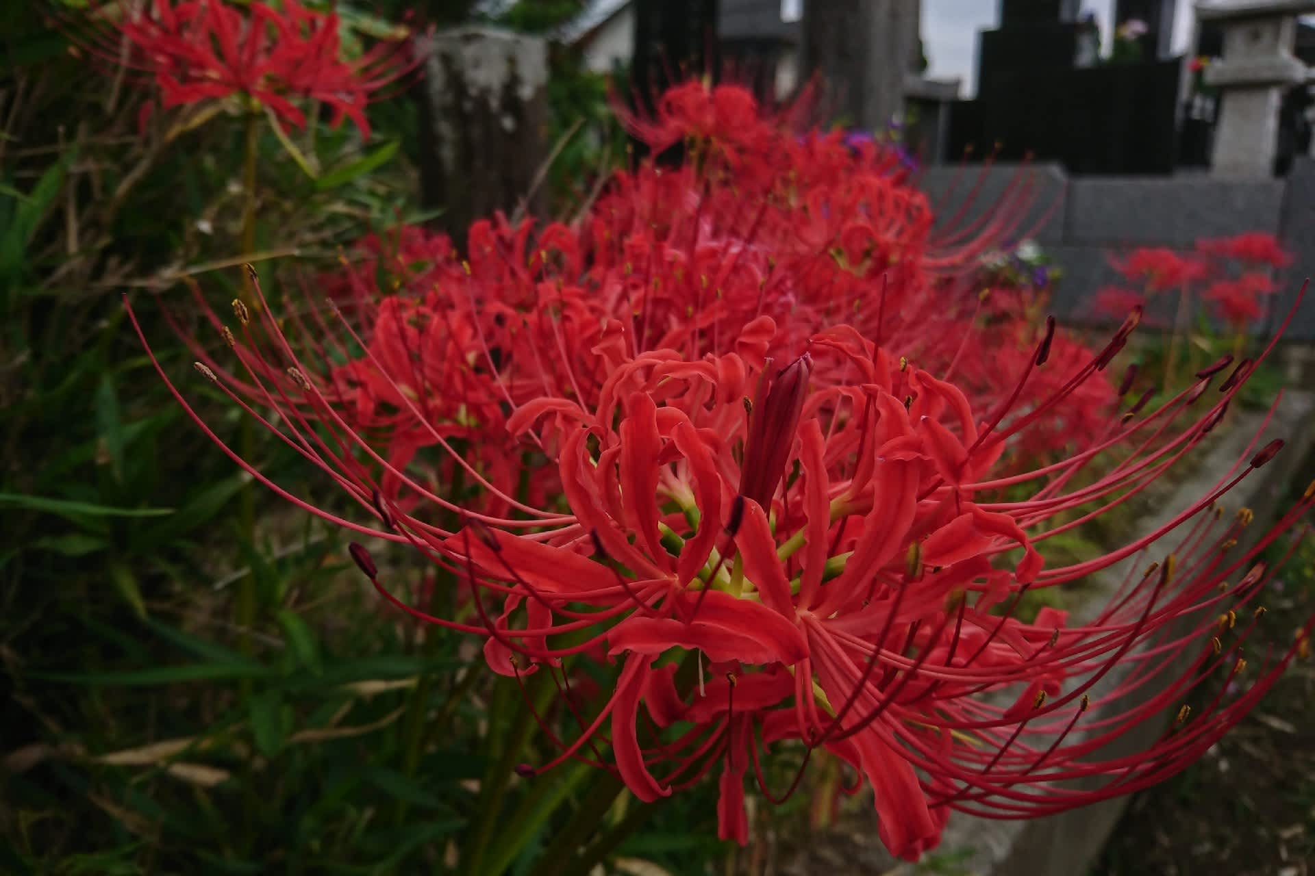お彼岸につき墓参り。両親のそれぞれの先祖の墓、また両親の義父母の墓と3箇所運転手を務める。彼岸花とはよく言ったものであちこちの畦道などで沢山の花が咲いていた。