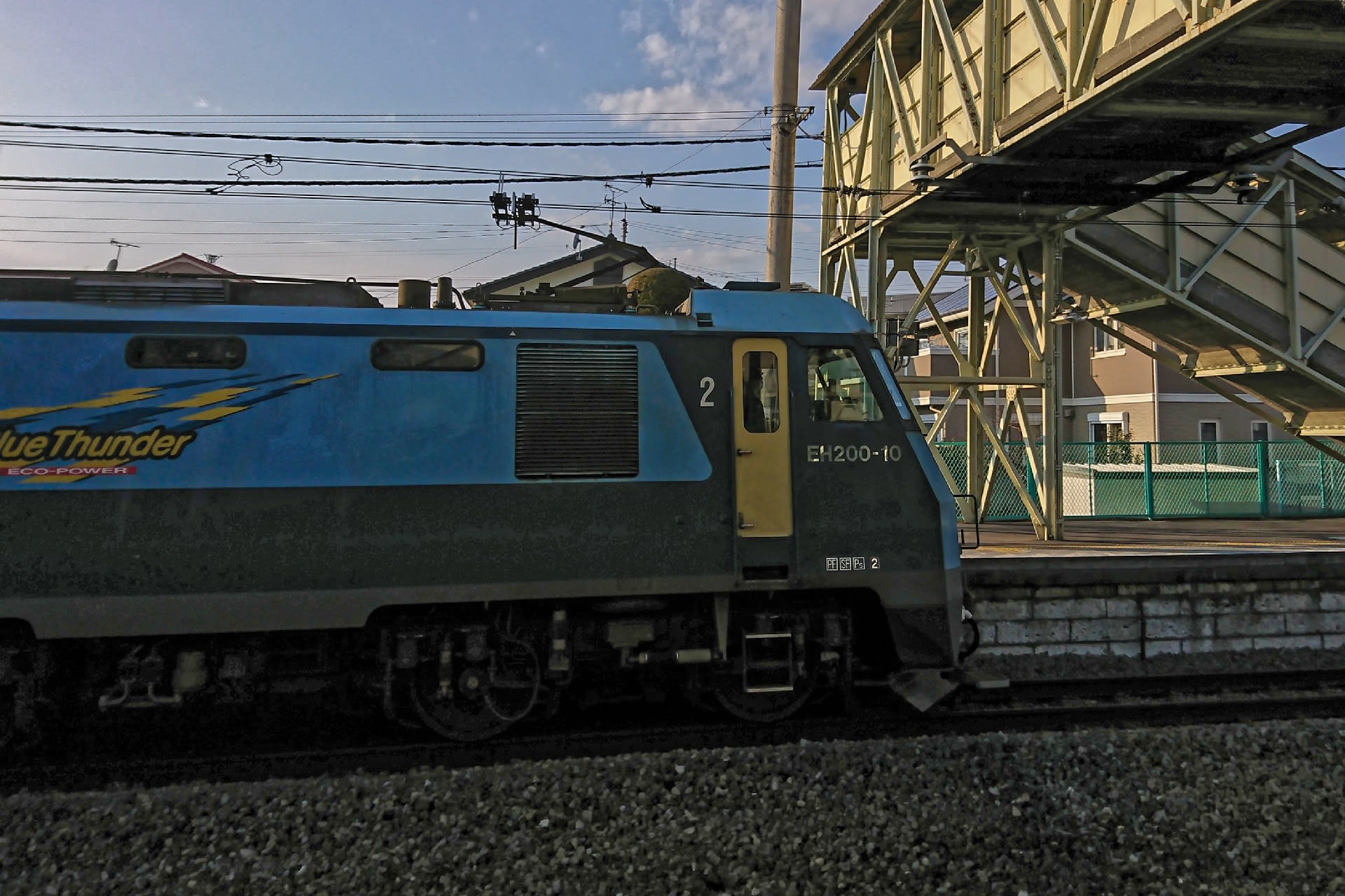 上越新幹線が開通して、日本海方面の優等列車がすべて廃止になって、井野駅も線路が一本外されてしまった。それでもJR貨物の幹線であることには変わりがない。今日もブルーサンダー牽引の貨物列車が通過していった。