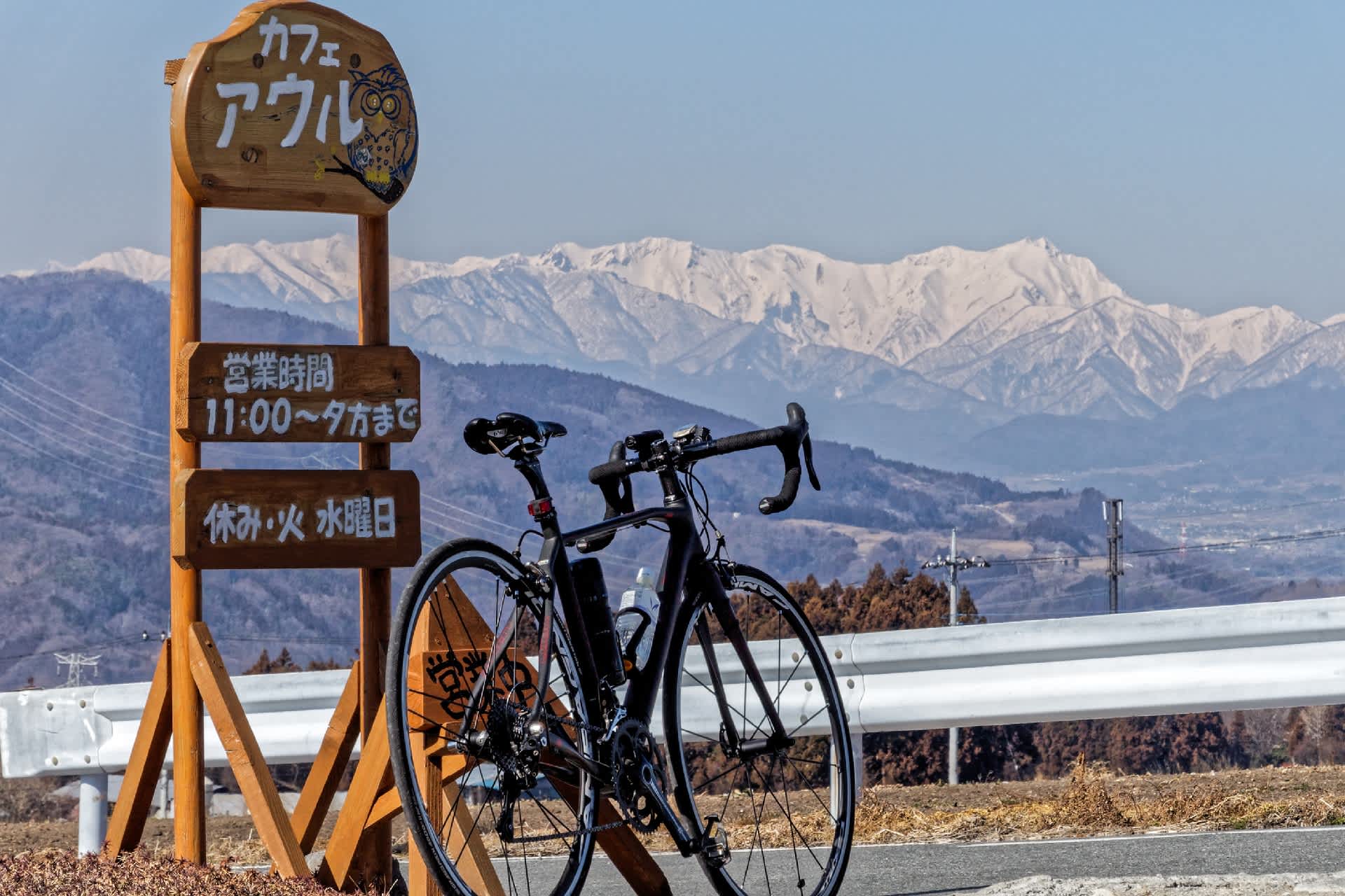 ひさしぶりに「カフェ・アウル」で昼食、本当に久しぶり。空気が湿気を帯び期待した上越国境の山々は霞んで見える。早春の気配だ。