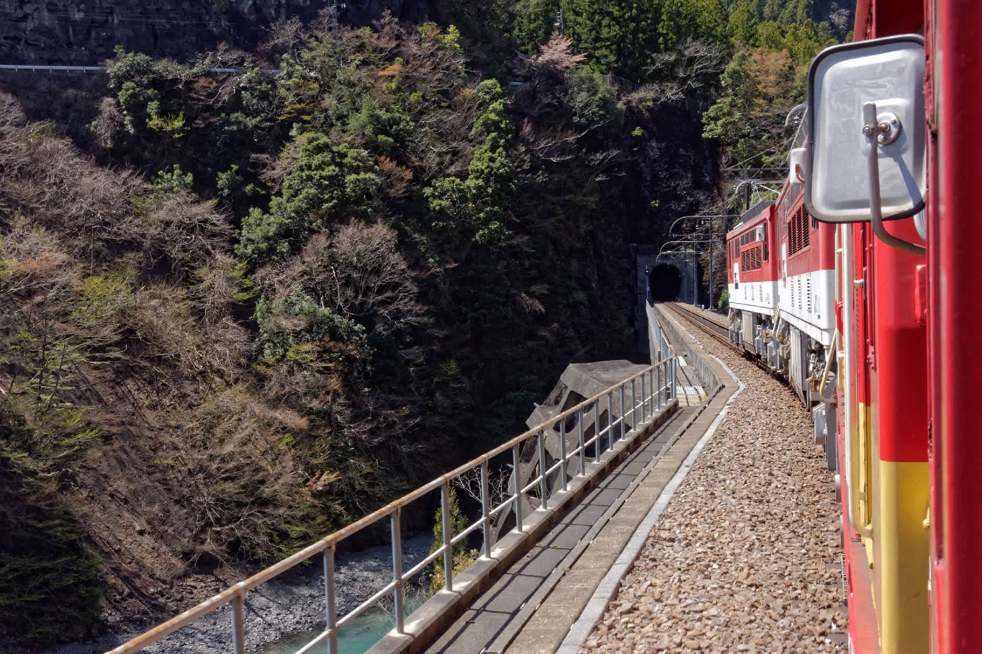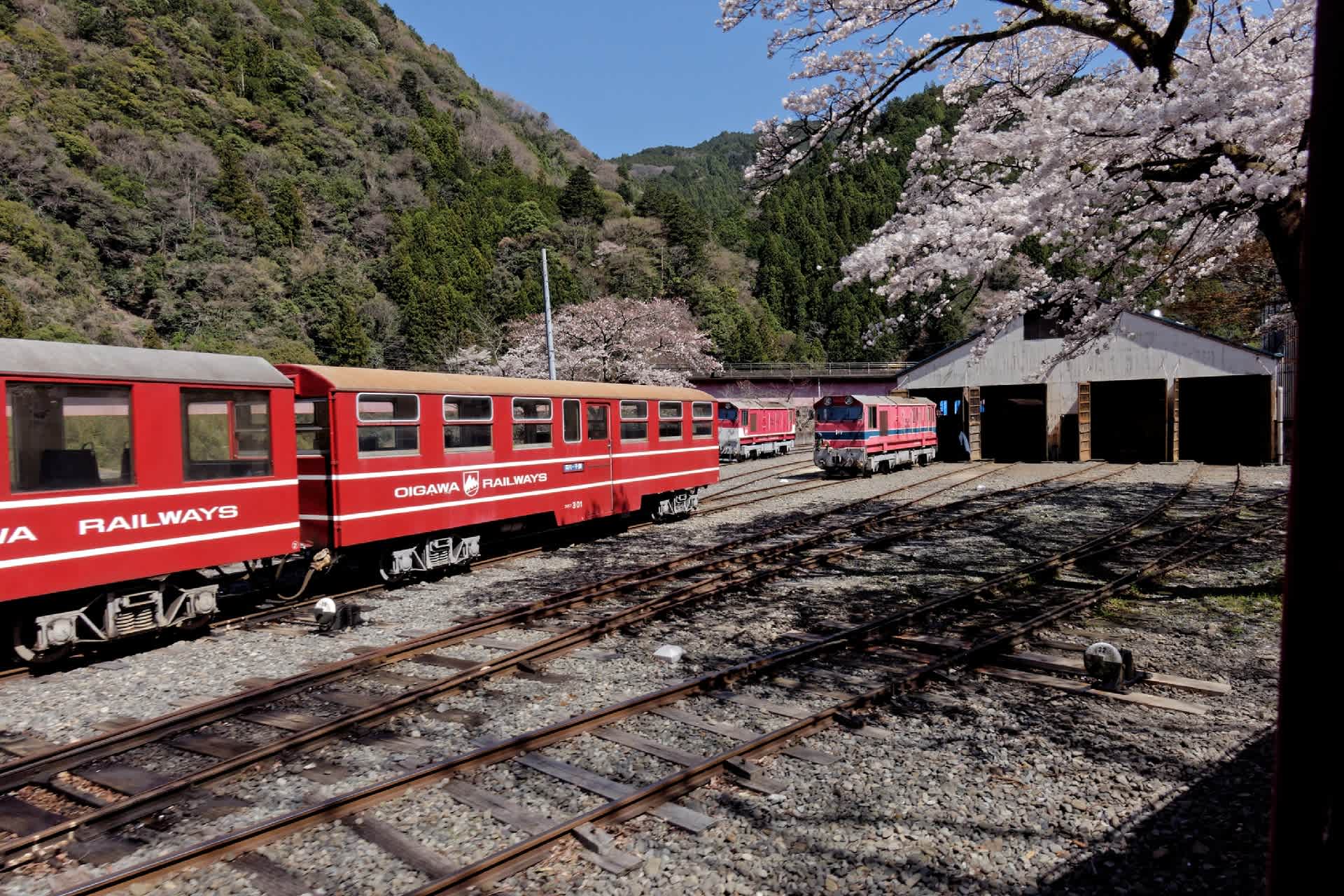 もともと中部電力の工事用路線のいわば軽便鉄道を引き継いだものだから車両規格も極めて小さい。かつ冷暖房は当然なし。これから訪れる一は季節をよく考えたほうが要であろう。一応ボギー車であるが乗り心地は期待できない。そんな細かいことは周囲の景色の素晴らしさで消し飛んでしまうが。木の芽時である。柔らかな緑の中に桜が点在して咲いている。