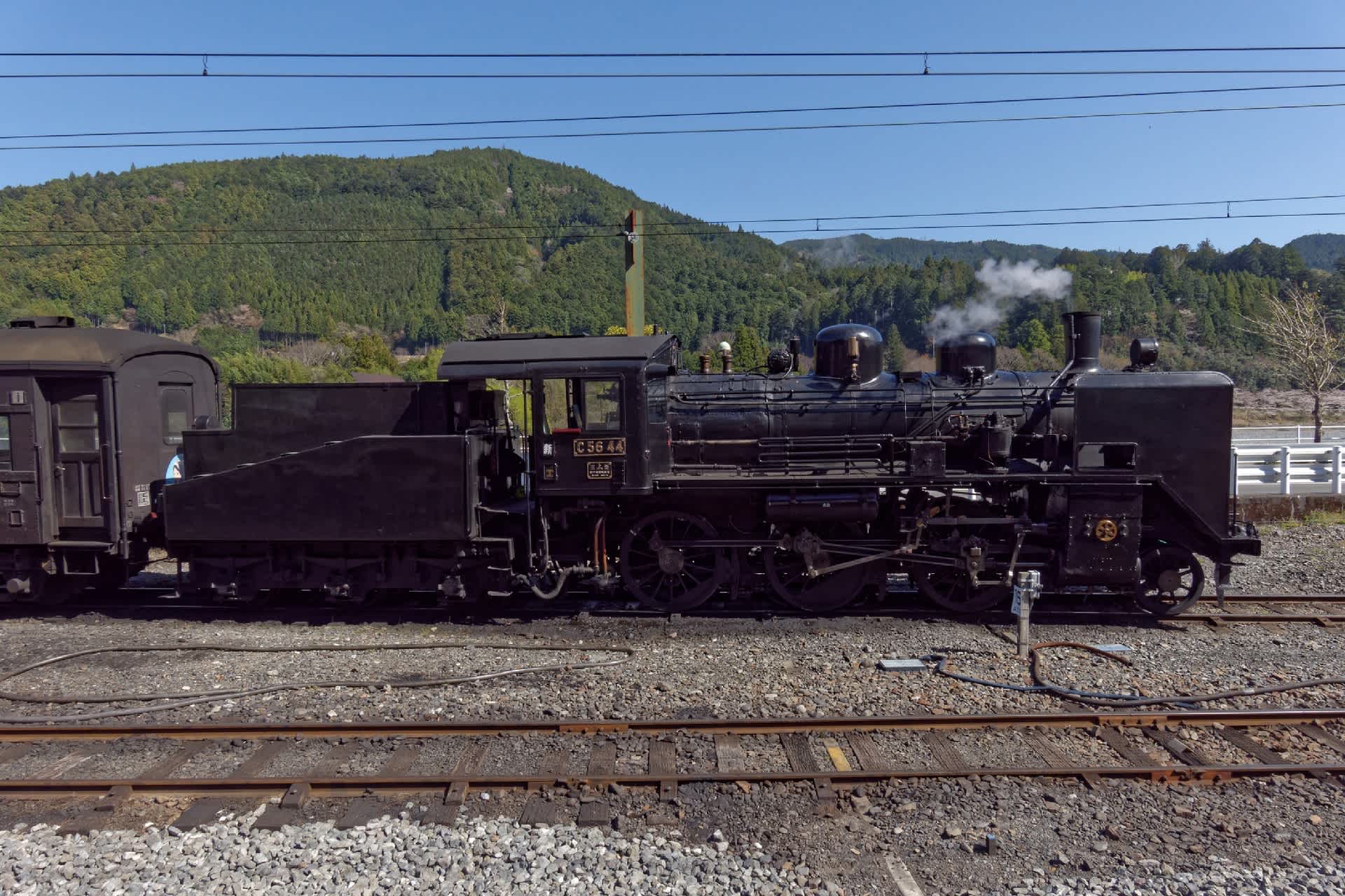 帰路の列車はC56 44。タイからの帰国車で戦争中軍事列車牽引のため供出された一両。映画「戦場にかかる橋」「クワイ河マーチ」の舞台である泰緬鉄道で働いた。数奇な運命の車輌だ。小海線でもポニーの愛称で貨客列車を牽引していた。7両もの客車を牽引するなどローカル線用機としては名誉なことではある。