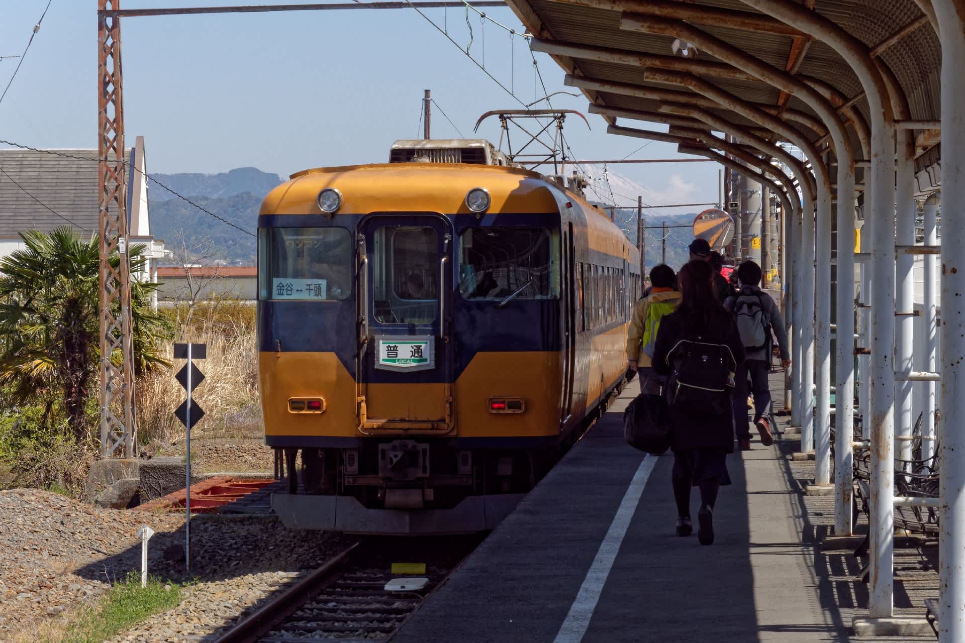 金谷駅では大井川鐵道の普通列車、旧近鉄特急が出迎えてくれた。初めて奈良に旅行したときの車両形式のような気がする。