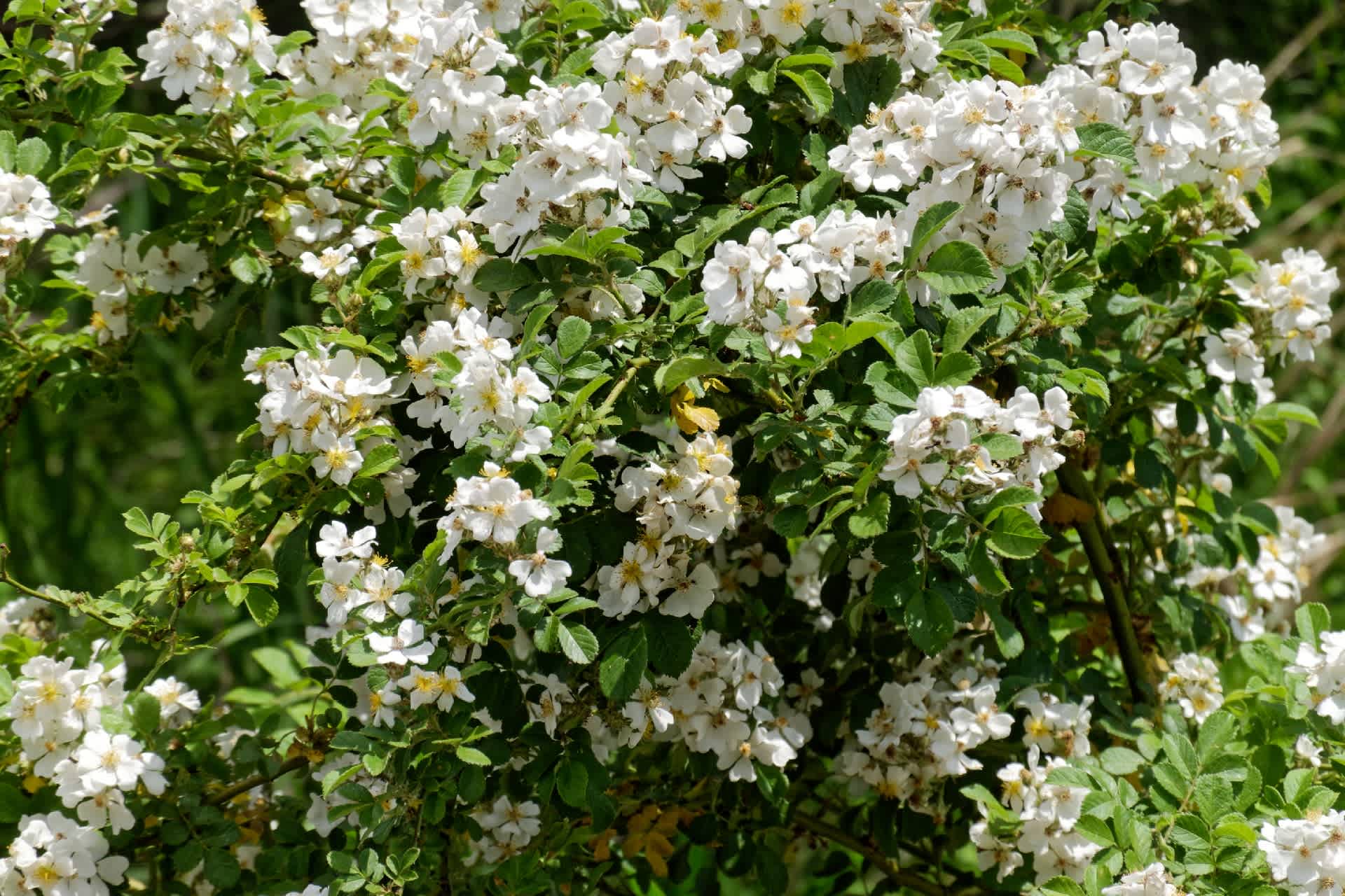 替わってノイバラの全盛期。花は小さいが香りは立派なバラの香り。沿道にはたくさんの白い花が咲いている。