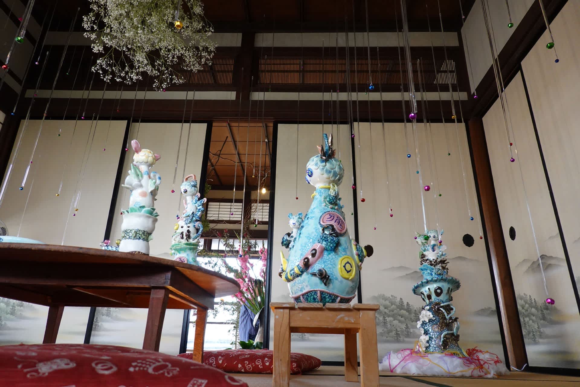 WEBデザインで長年お付き合いのある「呑龍文庫ももとせ」の木口さんが関わる「はなうつわ」という花と器のインスタレーションの行事があるというのでひさしぶりに足利のまちを歩く。会場が市街地に分散されていて大小あるものの古い民家を真夏のような白昼、日傘の波に混ざって巡る。