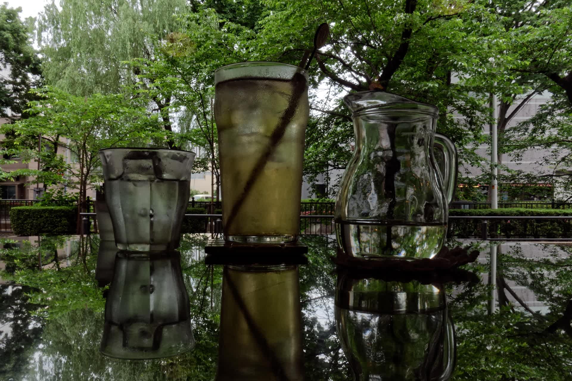 広瀬川を散歩。アールグレーのティーバッグを切らせていたのでリバティーによる。歩きながら汗ばむほどではなかったので温かい紅茶を頼もうと思ったが冷たいダージリンファーストフラッシュを勧められたので初めていただく。発酵が少なく緑茶にも似た爽やかな味わい。ガラステーブルに広瀬川の木々が映り込み一層涼やか。