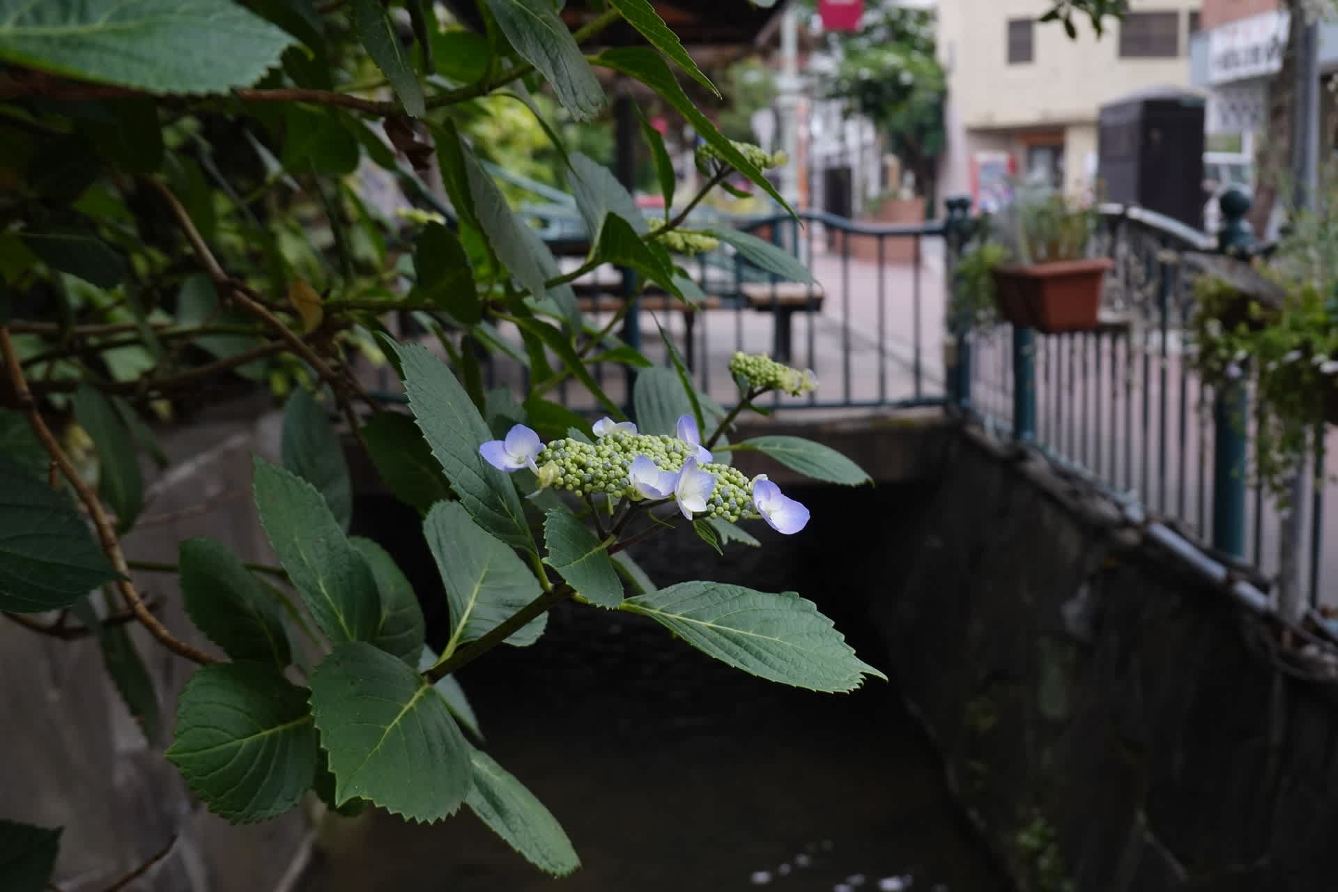 馬場川では紫陽花がたくさん咲き出した。梅雨入り前の爽やかな午後。