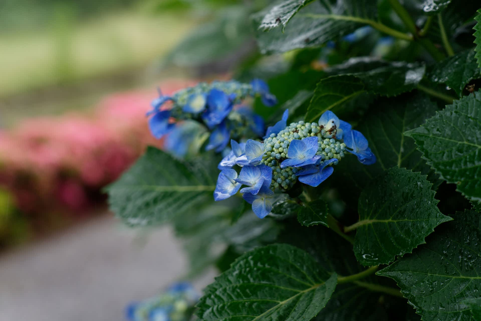 カメラを構えた集団が20にんほどぞろぞろ。ここの紫陽花は額紫陽花が多く色も強い色が多いのでやや残念でもある。