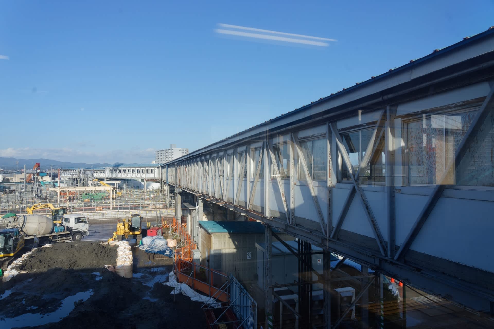 構内は線路が海に向かって伸びていた形跡を若干残しながらも空白感が漂う。異様に長い跨線橋は健在。ただ新しい駅舎を作っている気配があるからもうじき短くなってしまうのかもしれない。