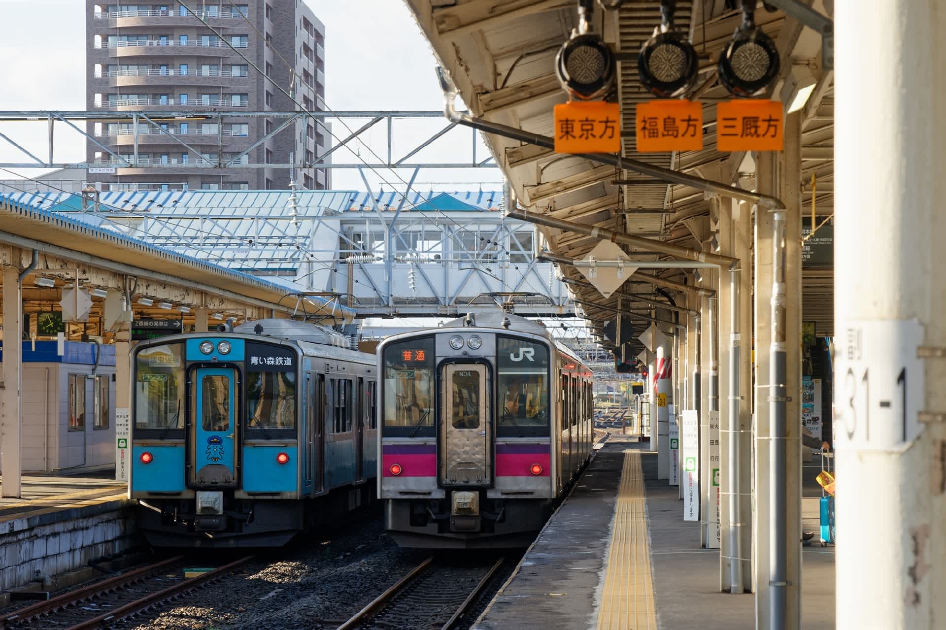 ホームの信号には東京方と表示があるのもかつて長大編成の長距離優等列車が発着していた名残だ。今は近郊用のE701系2両編成が発着と寂しい限り。