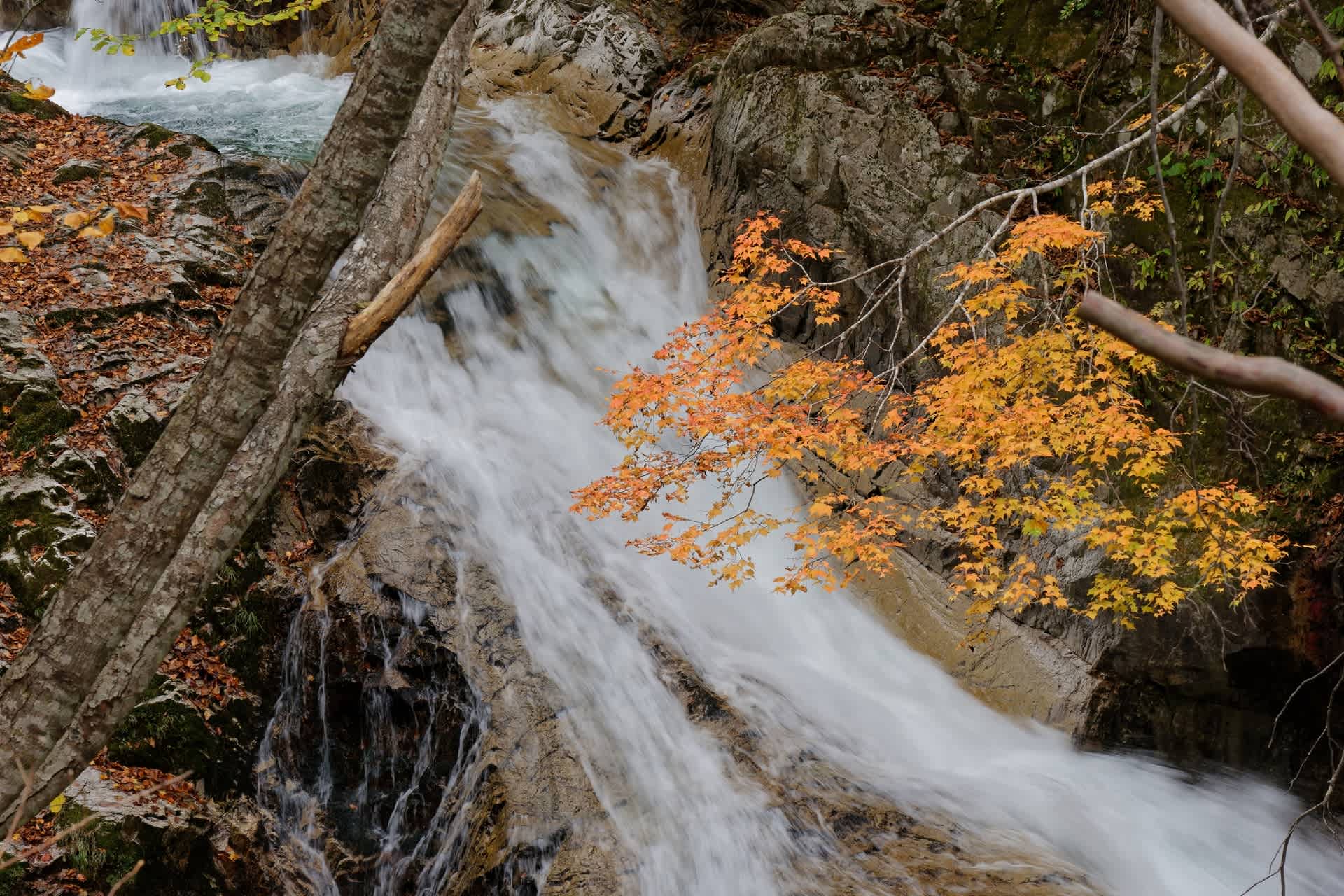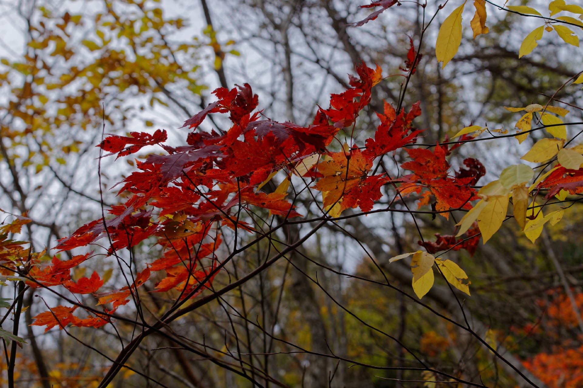 坤六峠はもう冬空。白い枝だけになった白樺が一層寒々しい。照葉峡は上流はやはり紅葉は終わっていたものの下流は今が盛り。様々な紅葉を見ることができた。