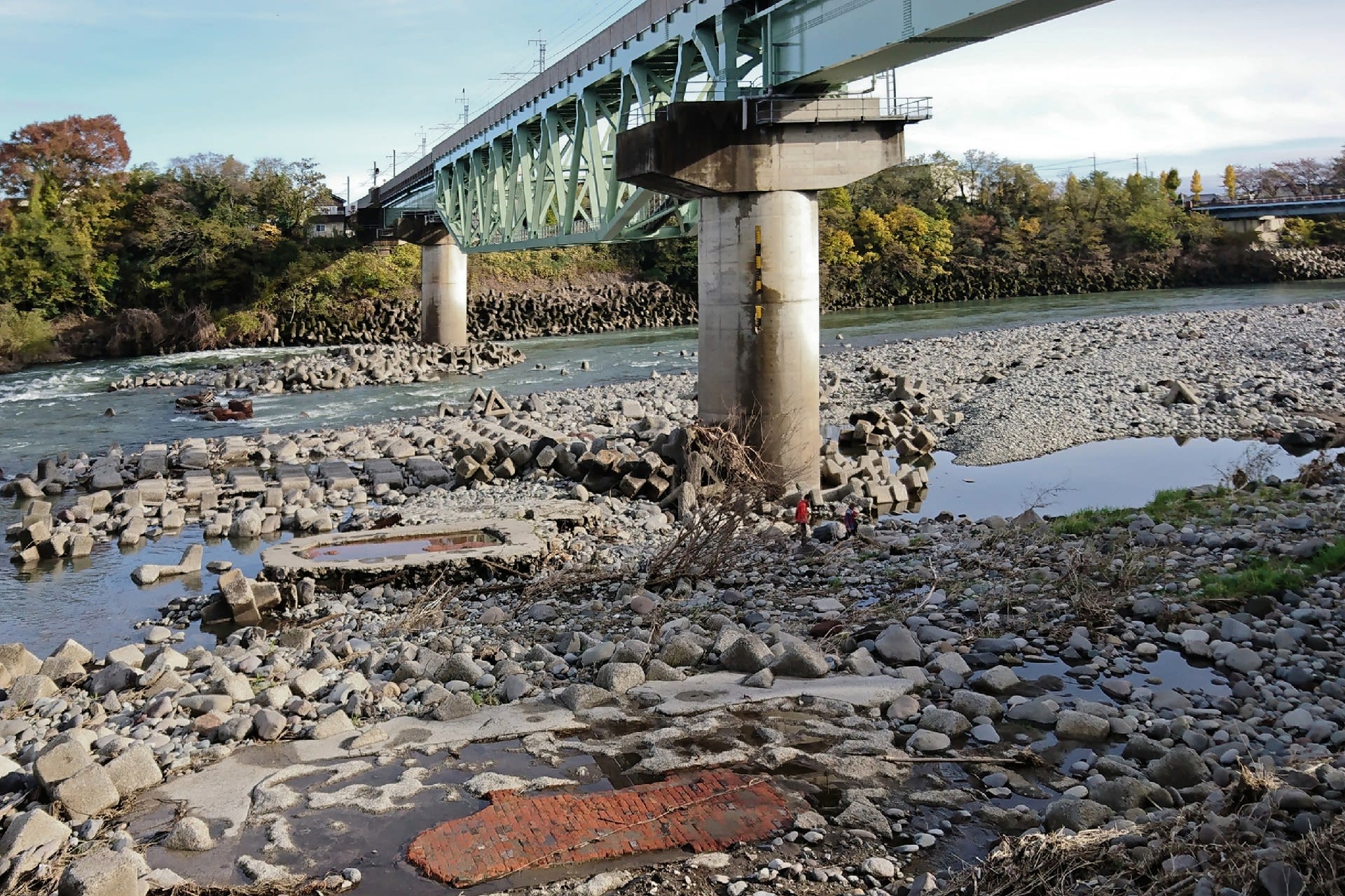 久しぶりにロードバイクを乗り出したが北行は大渡橋を過ぎて直に通行止め。だいぶ路肩が傷んだらしい。引き返して井野川サイクリングロードに入ろうと思ったらこちらもフェンスがすっかり路肩ごと川に落ちている。身近には被害が少なかったからのんきでいたが身近でも台風の爪痕を間近に見ることになった。路面は大量の落ち葉に覆われハンドルを取られないように慎重に走る。