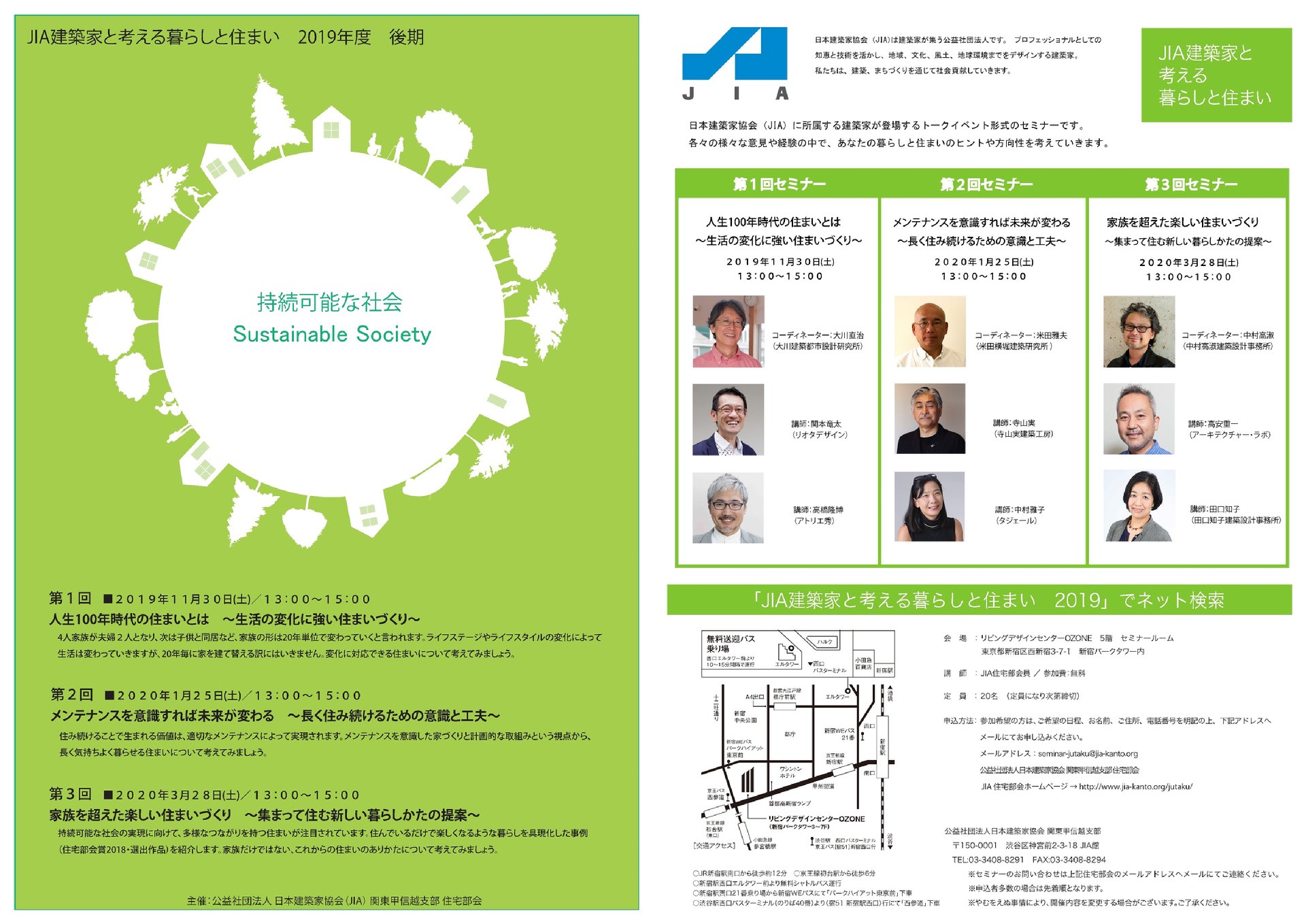 今週末はJIAの市民講座JIA建築家と考える暮らしと住まい 2019@OZONE メンテナンスを意識すれば未来が変わる 〜長く住み続けるための意識と工夫〜 のコーディネーター。準備を始めてみたもののなかなか進まず。
