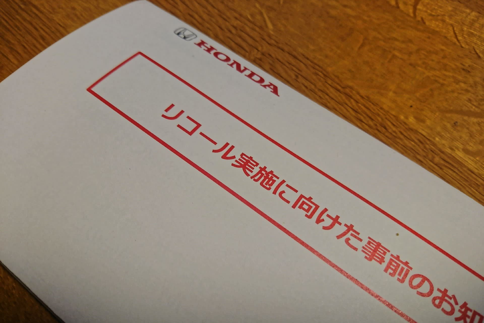 父から譲り受けた自動車(ホンダロゴ)にリコールの通知が来る。20年前の車である。運転席のエアバッグが開かない事象がアメリカであったので交換するとのこと。