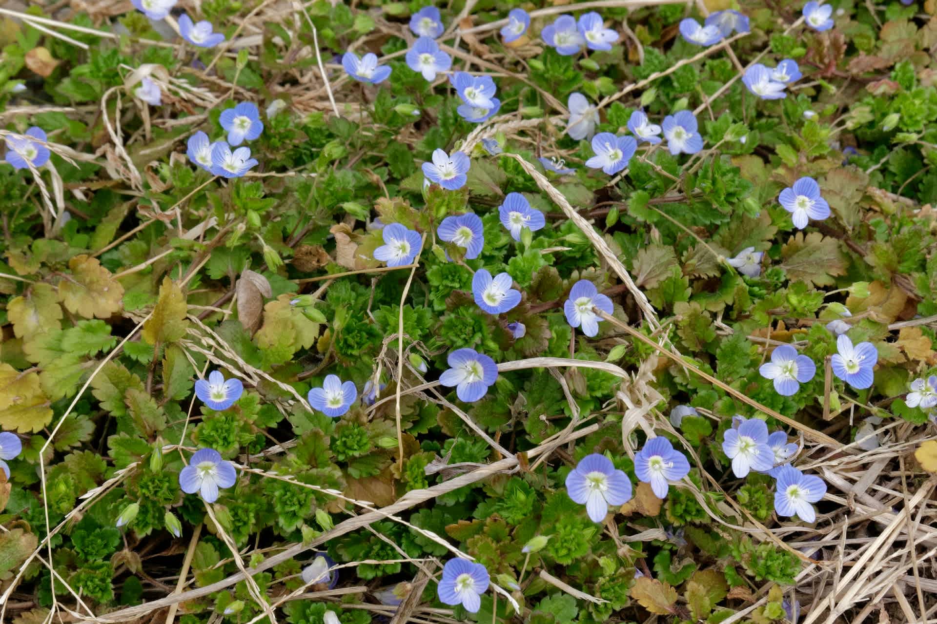 今日は暖か。着るものを選ぶのに悩んだがいつもの厚着をして出勤したら汗ばむ。井野川河畔もオオイヌノフグリの明るい青の小さな花やホトケノザの小さな赤い花が目立ってきた。
