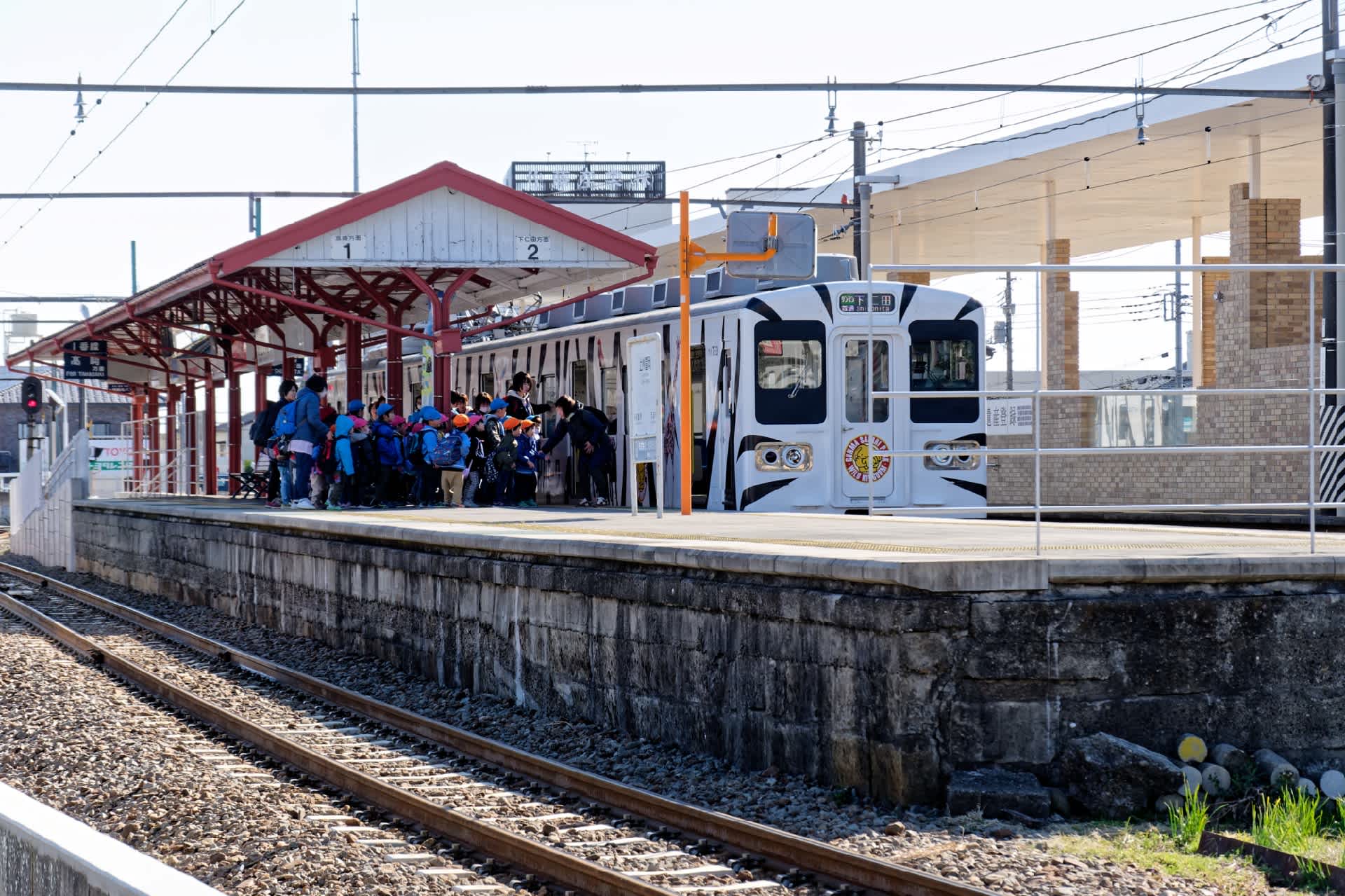 上州富岡駅で幼稚園児らしき集団を見かける。そして下りの電車旧JR117系、上信電鉄700型に乗り込んでいった。新旧それぞれ元気。