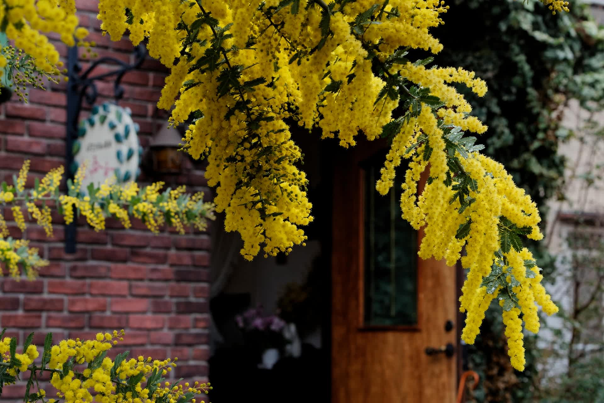 冬枯れのころの風情も北国を思わせる光景が好きだった。今日はミモザが満開。最後の輝きをみた。