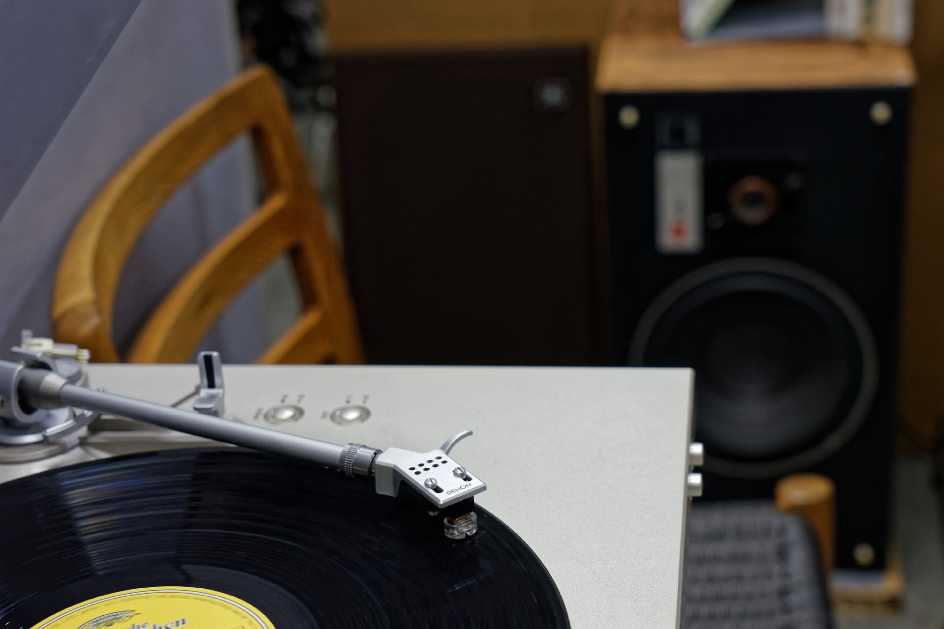 レコードプレーヤー本体は現代のものであるが針はグレースのF-8L、スピーカーは46年前のJBL L26、これはウーファーのエッジを2回張り替えている。