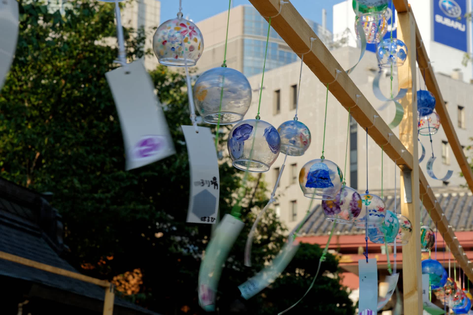 それにしても外に出てなにかする気には全くなれない毎日。夕方少し涼しくなったので八幡様の風鈴を見に行く。風にのって涼しそうな音が聞こえる。