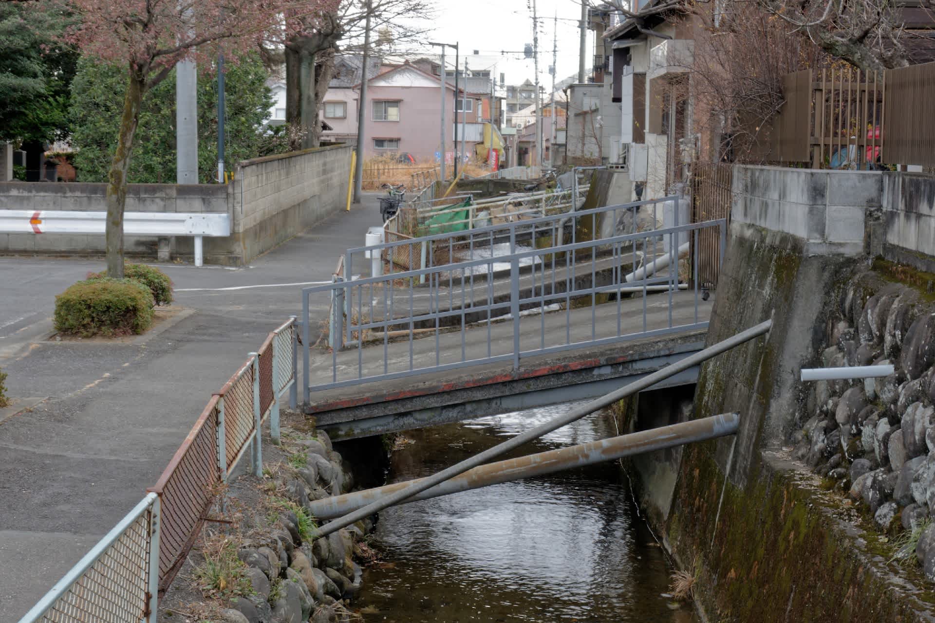 利根川が16世紀ころまで前橋市街地の北側を流れていた時代の名残で旧崖線には必ず坂道があり、現在の国道50号線はその旧崖線に沿って桐生方面から前橋の街に入る。本町あたりで坂を覗き込むと大きな寺院が軒をつらねているのが見える。この坂の下を崖線をトレースするように馬場川が流れている。広瀬川から分岐して流れるほぼ人工の水路だが生活用水として欠かせないものだった。だからたくさんの小さな私用の橋がかけられているがすでに空地になった敷地に渡された橋は寂しそうである。