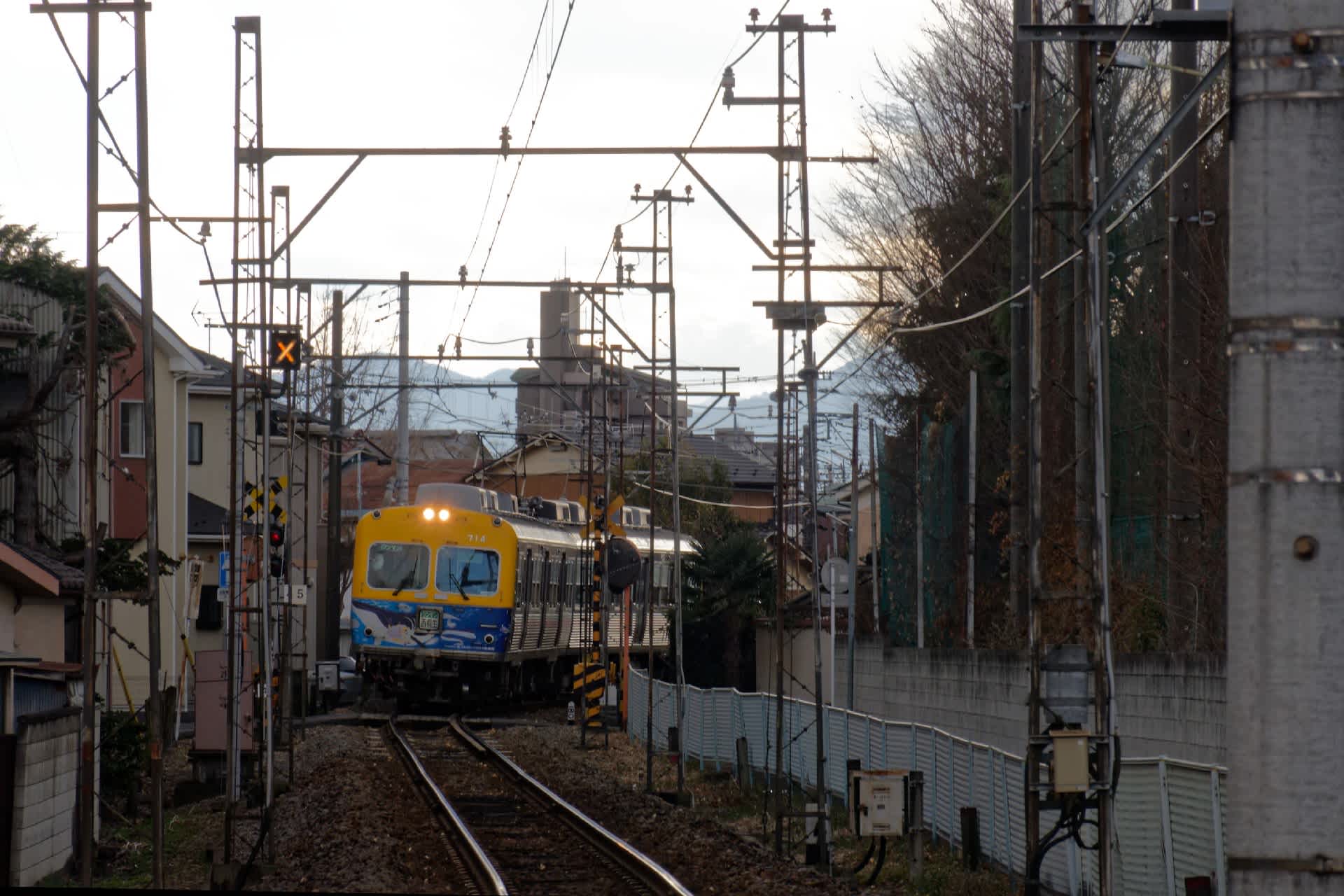 十六本橋を過ぎて広東橋を渡ると上電の城東駅、旧一毛町の停留所がある。ちょうど西桐生行の列車に会う。長両編成だった京王電鉄井の頭線の電車をワンマン2両編成に仕立て直し第二の人生を送っている。順調に行けば新造車が導入される予定だったがコロナの影響で遅れるらしい。