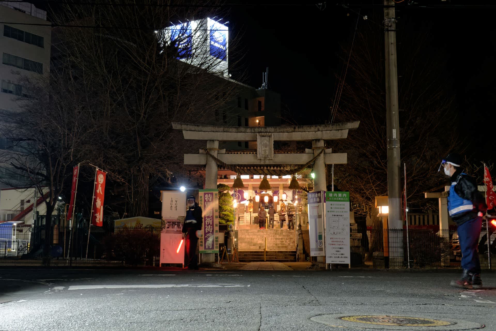ちょっと寂しい今年の初市。投光器の強い光と可搬発電機の騒音と揚げ物の匂いと懐かしい今年の初位置はぐっと質素に。