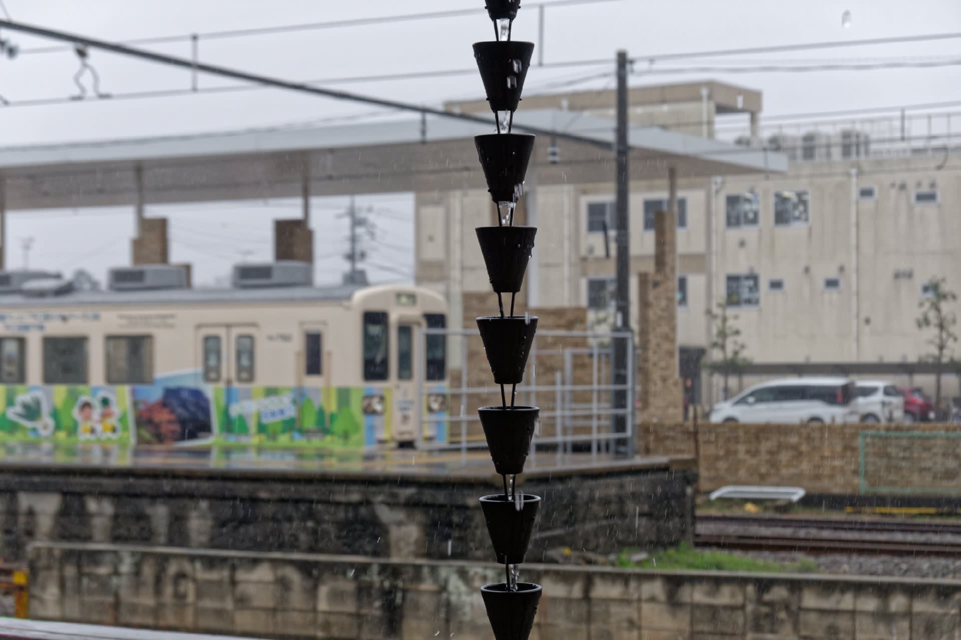 現場は富岡駅の北側。線路を挟んで隈研吾と対峙する格好になった。